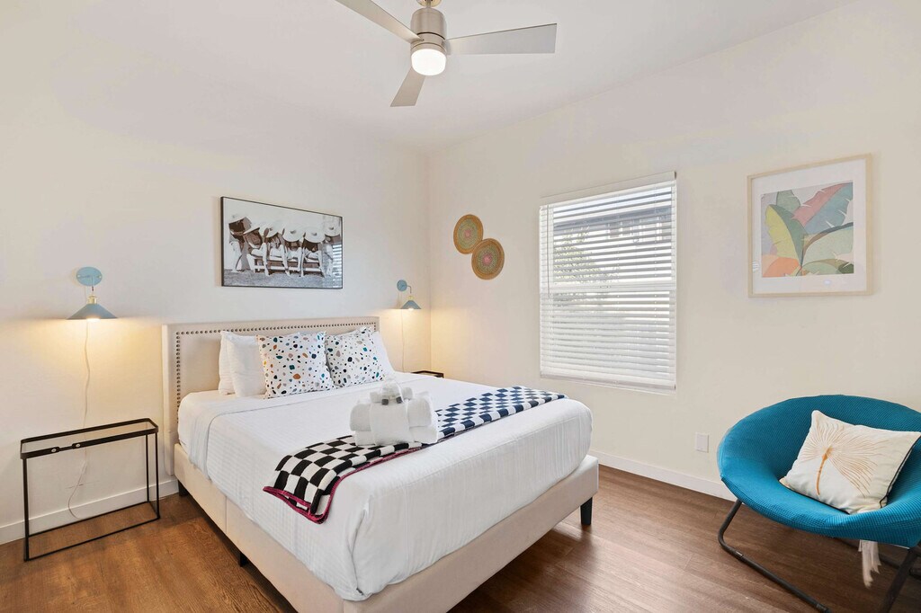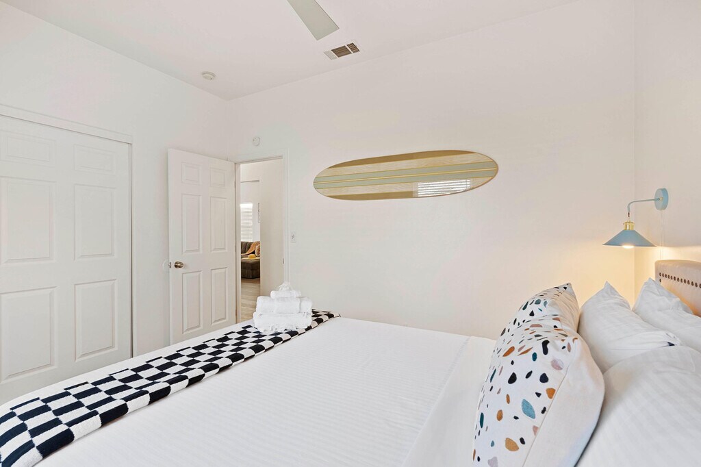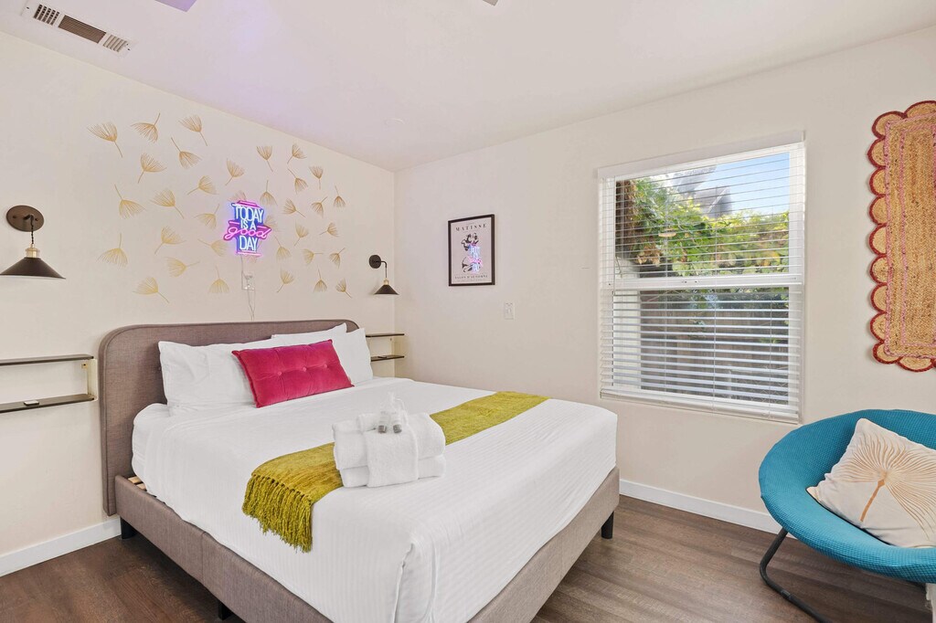 Feel at home in this enchanting cottage-style home, perfectly located in the lively heart of Point Loma. This newly renovated gem features modern elegance and cozy comfort, with three delightful bedrooms, a brand-new deck, and a private backyard oasis complete with a fire pit and spa. Enjoy the convenience of free parking on the premises and easy access via stairs. Step inside to discover a fully equipped kitchen, plush memory foam mattresses, and premium sheets, linens, and towels. The home offers high-speed Wi-Fi and smart TVs with streaming capabilities, ensuring you stay connected and entertained throughout your stay. The property includes a private patio with a fire pit and spa for unwinding. Free parking is available on the premises. Located just half a mile from the picturesque harbor, one mile from the airport, and two miles from the sun-kissed shores of Ocean Beach, this home offers the ultimate blend of coastal relaxation and urban convenience. Enjoy a short walk to local restaurants, shops, grocery stores, and fresh seafood markets. Nearby attractions include San Diego Harbor, Liberty Station, Sunset Cliffs Natural Park, SeaWorld San Diego, Balboa Park, and the Gaslamp Quarter. The only way into the unit involves stairs. Guests are required to sign a Good Neighbor Policy document prior to check-in, which can be done online. Quiet hours are enforced between 22:00 and 8:00. Occupants exceeding the number declared on the reservation will not be permitted to stay past 10 PM, and no more than three additional guests are allowed on the premises at any time. Noise complaints and smoking of any kind on the property are prohibited, with a fine of $500 for violations. Excess trash should be removed, and dishes washed before checkout. Furniture must be moved back before departure, and all doors and windows should be locked before leaving. No pets are allowed without prior approval. Registration Number: STR-00041L [SI]