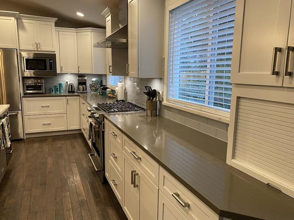 Feel at home in this retreat located in a neighborhood with miles of open space, a pond, and a trail system. This home features an open floor plan kitchen with plenty of natural light and cozy sitting areas. Three bedrooms are on the second floor, including the master, and the fourth bedroom is in the basement. The remodeled house has a chef's kitchen with a huge island, formal dining area, and breakfast nook. There is also a sitting area where you can enjoy your morning coffee. The downstairs features a large family room equipped with a huge wrap-around sofa and a flat-screen TV. The fourth bathroom is off of a large rec room and foosball table. Walk out of the kitchen onto the deck and sitting area, and right down to the oversized patio with a large dining area, grill, and hammock. Guests have access to the entire home, garage, and private yard with a beautiful outdoor space. Located 20 minutes from Denver and 15 minutes from Boulder, in the established neighborhood of Lac Amora, this home is virtually void of traffic noise. Hiking and mountain bike trails are just steps away, and a Starbucks, supermarket, liquor store, and restaurants are under a mile away. Multiple parks are within walking distance, and a grocery and liquor store are under a mile away. Restaurants and shops are close by and it's conveniently located within a 10-minute drive to breweries, shops, ice skating, and a movie theater. It's also near the Westminster promenade and the Flatirons mall. Please respect our neighbors and limit parking to the driveway or in front of the house. Includes a desk with a printer for all of your office needs. [SI]
