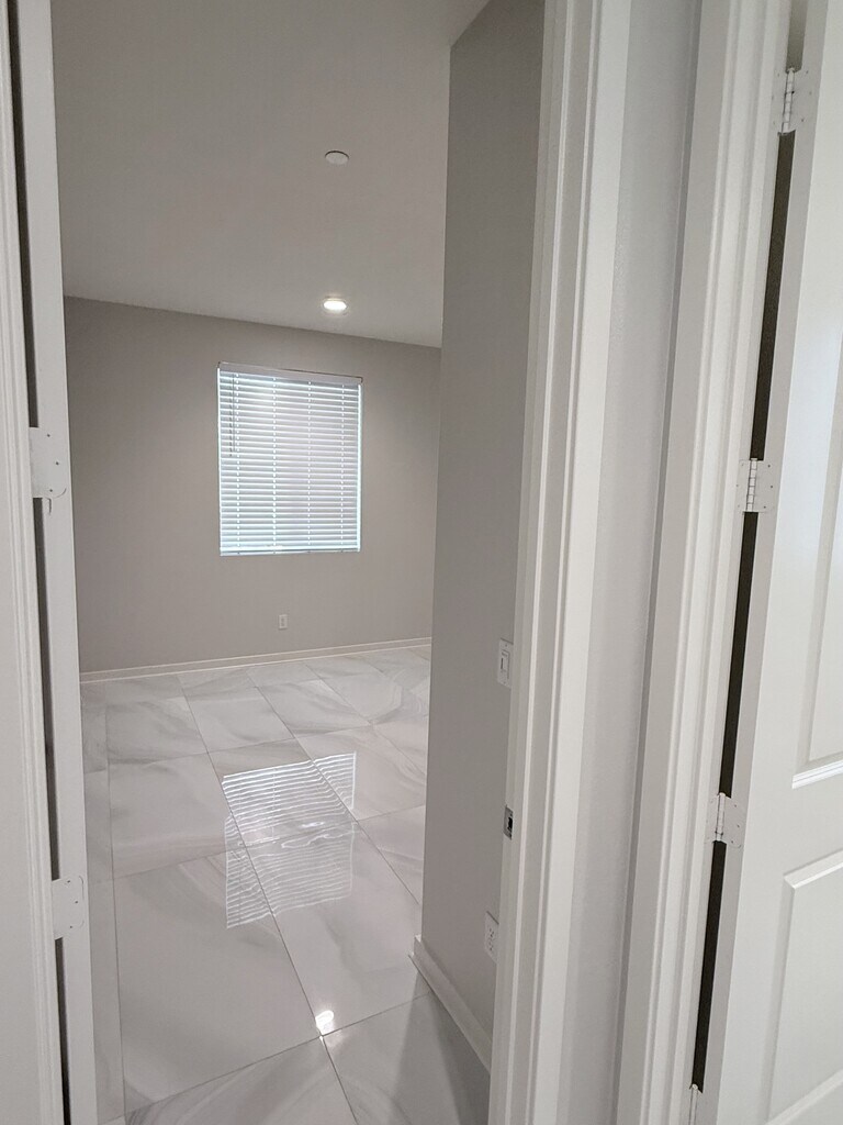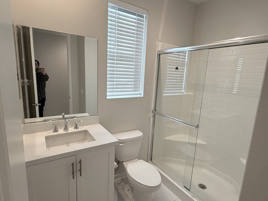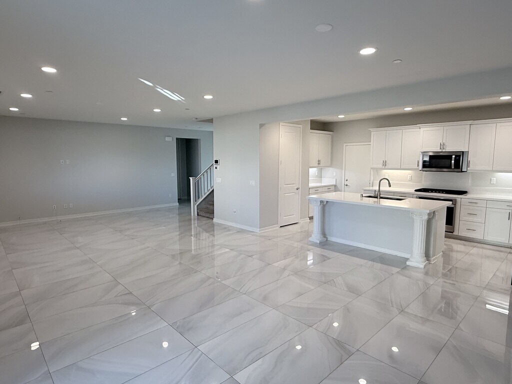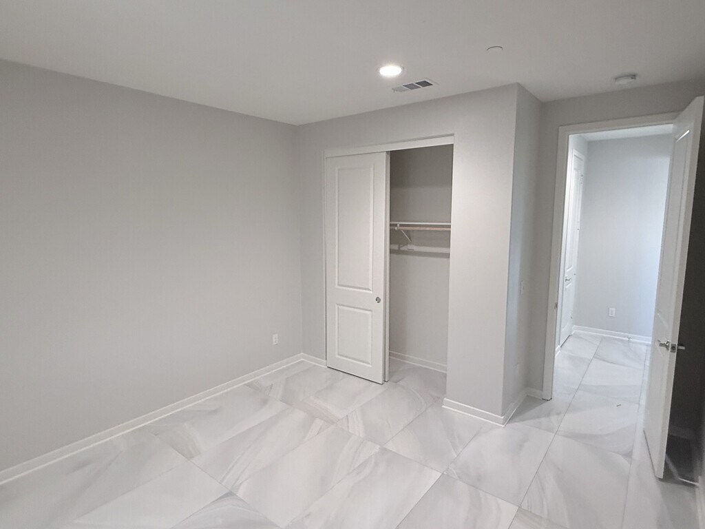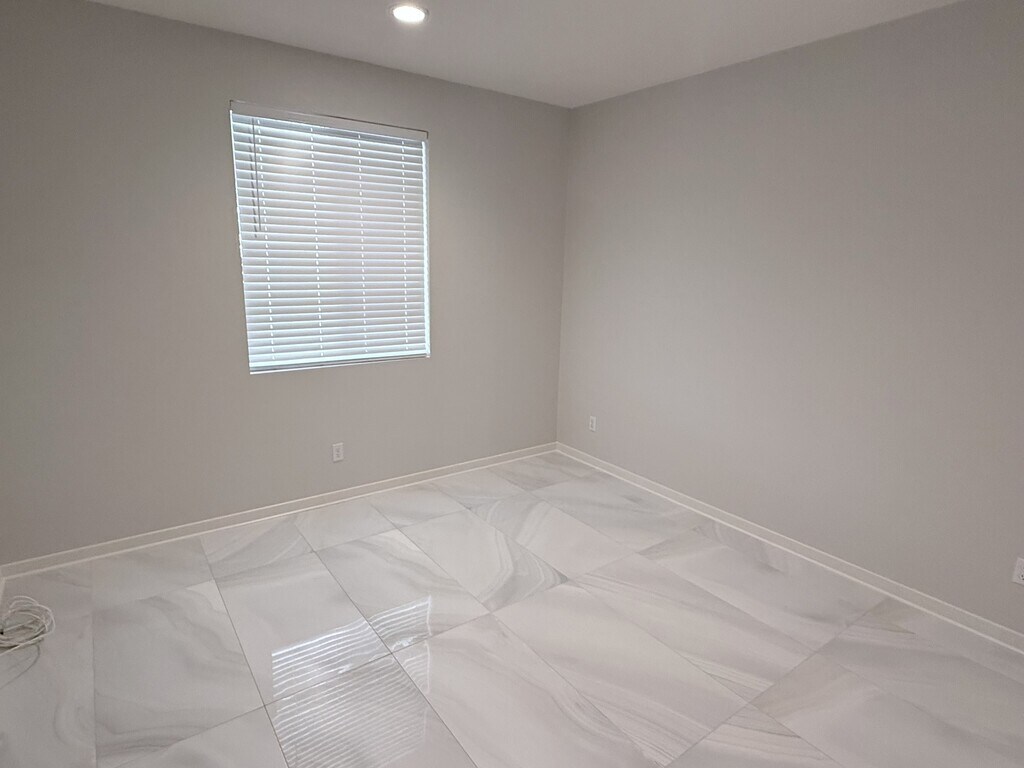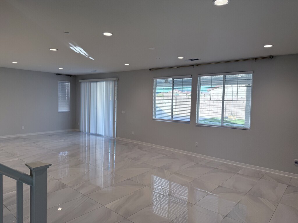Step into this stunning home featuring a modern, sleek tile design throughout the downstairs area. The open floor plan includes a comfortable living room perfect for large gatherings, a flexible office/den/play area near the entrance, and a convenient downstairs bedroom with a full bathroom and walk-in shower. The bright, contemporary kitchen boasts crisp white cabinetry, a walk-in pantry, modern stainless steel appliances, and a refrigerator—all ready for your next culinary adventure. Enjoy the low-maintenance backyard complete with a large covered concrete patio, clean synthetic turf grids, and a few easy-care bushes—perfect for entertaining family and friends. Upstairs, you'll find a spacious loft and a luxurious primary suite featuring a soaking tub, separate shower, and an enormous walk-in closet. Three additional well-sized bedrooms are located just across the hall, along with a laundry room equipped with a washer and dryer for added convenience. Energy-efficient solar panels help keep electric bills low. This beautiful home truly has it all—space, style, and comfort. It won't last long, so schedule your tour today! S.D.S. Realty & Property Management. Office: Website: