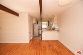 Open style Mid Century apartment with wood beamed ceilings and large outdoor private patio, features wood floors throughout, white kitchen with quartz counter tops and stainless steel appliances. Plenty of closet space with modern bathroom includes, wood cabinetry. 1 car parking! In a 4 unit building with laundry room, drinking water system, Walk to Main Street, Abbot Kinney, Rose Ave and the Beach! MLS# 25600001