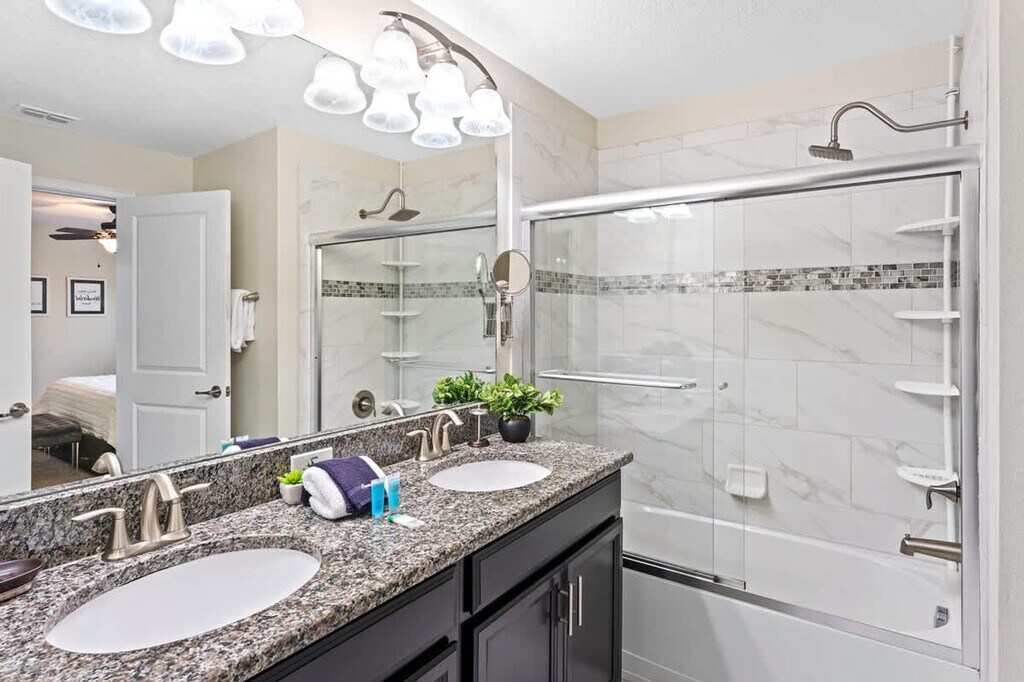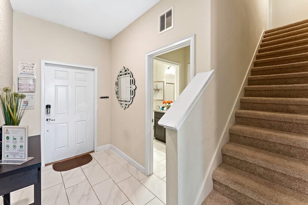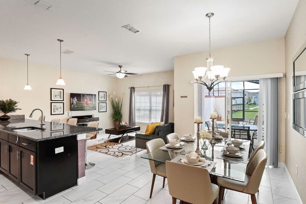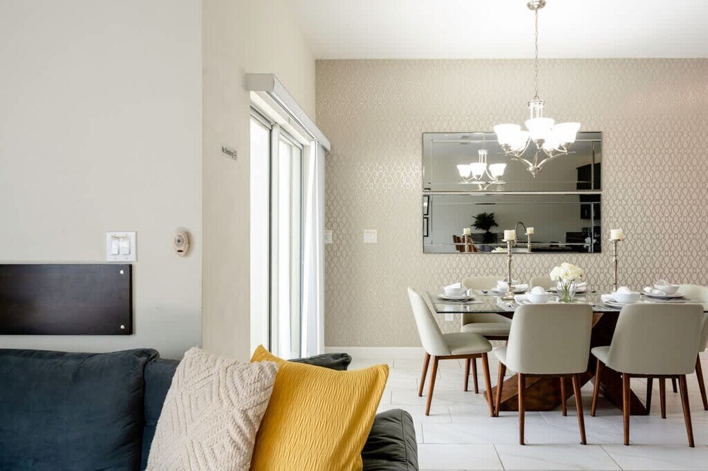 Feel at home in this spacious four-bedroom, three-bathroom property that accommodates up to eight guests. The apartment features a smart TV set-up in the living room and bedrooms, and offers high-speed Wi-Fi provided by Spectrum. The southwest-facing private pool with a deep end of 4 feet is perfect for relaxation, and the property is located in the luxurious Storey Lake Resort, just 4 miles from Disney. The apartment is thoughtfully designed with modern furnishings and includes a fully equipped kitchen. Enjoy entertainment with smart TVs in the living room and bedrooms, and stay connected with high-speed Wi-Fi. The private pool and spa offer a perfect retreat for relaxation. Pets are welcome with a fee of $250 for one pet and $150 for each additional pet. The property offers a pool heater for $35 per day with a minimum of three consecutive days. Additional services such as grill rental, early check-in, late check-out, and mid-stay cleanings are available upon request. Storey Lake Resort is a brand-new luxurious vacation community located just 4 miles from Disney and minutes from Universal, Sea World, and other attractions. Enjoy spectacular outlet shopping nearby, and a variety of dining options just a quick drive away. The resort offers top-notch amenities including a fitness center, poolside dining, a heated pool and spa, a lazy river, mini golf, water slides, and kayak rentals. The main clubhouse is about a 20-minute walk from the property. The property is 100% smoke-free, and a fee of $250 will be charged for any signs of smoking. The pool area is secured with a safety fence, and no lifeguard is on duty. Pets are not allowed in the pool. Check-in is at 4 PM and check-out is at 10 AM. Unauthorized late check-out will incur a fee. The property has a regular pest control service, but sightings of wildlife or pests may occur. Trash must be disposed of properly to avoid additional fees. [SI]