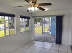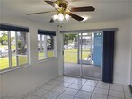 This charming home has it all. Sailboat access with concrete dock. No lift. Very bright and very CLEAN. Open living room area with laminate flooring for easy care. Great bonus space with the Florida room with plenty of windows to let in that natural Florida sunshine. The screened patio provides a nice place to relax and look over the well-maintained lawn and canal. The kitchen offers a small eat-in area,and windows that extend from almost the floor to ceiling make this workspace even brighter to cook in. Two good-sized carpeted bedrooms and two full baths. Laundry hookups in the garage. Non-pet-friendly home. And a bit of extra storage. Come take a look before it's gone...