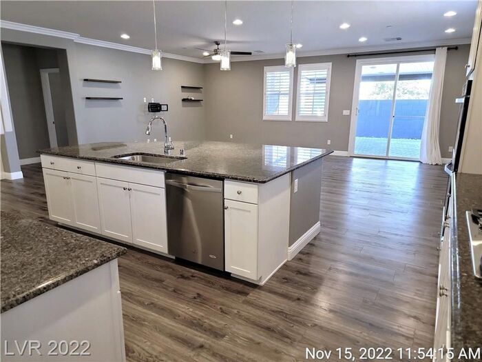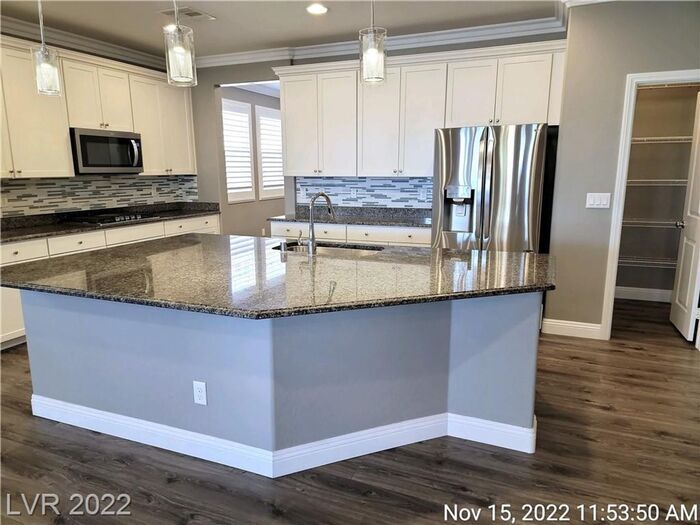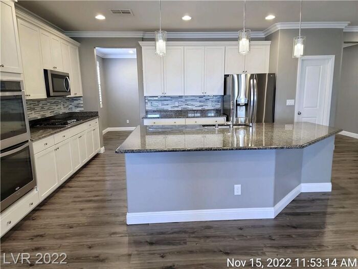 NEW PHOTOS COMING SOON. **JOIN THE WAITLIST HERE (Not Accepting Applications Until the Property is Viewed): Beautiful single-story home with plank flooring throughout and tile in baths. The open great room and stunning chef’s kitchen feature an island, granite counters, designer backsplash, and stainless appliances. Enjoy movie nights in the media room with projector and screen. Spacious primary suite includes a walk-in closet, double sinks, and separate tub and shower. Low-maintenance backyard with full pavers and covered patio, perfect for entertaining. Community amenities include pools, fitness center, sports courts, skate park, and playgrounds. No pets. Contact us to schedule a showing.