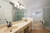 This beautiful Lakeland home is move-in ready today! 3 bedrooms, 2 bathrooms with den and eat-in kitchen. The primary bedroom with ensuite bathroom is nicely appointed with vaulted ceiling, separate soaking tub, updated shower, and walk-in closet. Landscaped corner lot with private backyard retreat is a wonderful place to relax and unwind. Schedule your private showing now.
