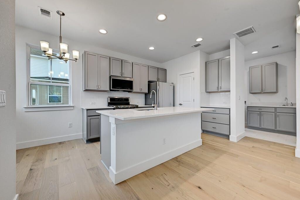 Great stand-alone rental home in the coveted Mueller neighborhood with no adjoining neighbors and windows on 4 sides. 2 bedrooms, 2.5 baths, plus TWO offices. Sit on your front porch waving to the neighbors and also participate in the relaxed Mueller experience that offers and easy walks to HEB supermarket, Alamo Drafthouse movie theater, numerous microbreweries, restaurants, food trucks, coffee shops, farmer's market and other retail as well as neighborhood parks, pools, community garden, and outdoor performance spaces. The Mueller greenway starts at the end of the block for great walks along beautiful ponds. Easy commute to downtown, UT, Barton Springs, live music and all that Austin has to offer. This must see, 3 yr old, stylish, modern home includes hardwood flooring throughout, open kitchen and great room, stainless steel appliances, quartz countertops, abundant cabinet space, kitchen pantry, walk-in closets, ceiling fans. Home office rooms upstairs and downstairs perfect for two people working from home. Enjoy this cozy, clean and modern home for years to come! Available now. Will go fast. For walkthrough dollhouse video