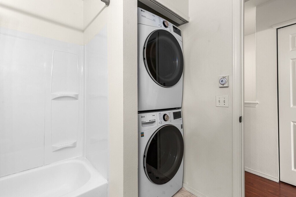 Discover the perfect blend of comfort and convenience in this beautiful 2-bedroom, 2-bathroom townhome, offering 1,063 sq. ft. of thoughtfully designed living space. Nestled just off 164th, this prime location provides easy access to Lynnwood, Mill Creek, and Bothell, making commuting and daily errands a breeze. Step inside to soaring 9-foot ceilings and an inviting open-concept layout, flooded with natural light. The modern kitchen boasts granite countertops, a spacious island, and sleek cabinetry, seamlessly flowing into the living area and a private patio overlooking lush greenery—perfect for relaxing or entertaining. Upstairs, the two well-appointed bedrooms feature double closets, providing ample storage, along with two full bathrooms and an in-unit washer/dryer for ultimate convenience. The 2-car tandem garage offers plenty of parking and extra storage space. Enjoy resort-style community amenities, including a pool, spa, fitness center, clubhouse, and nearby protected trails. With shopping, major freeways, bus lines, and the upcoming light rail station just minutes away, this home is ideal for those seeking both tranquility and accessibility. Don’t miss out—schedule your tour today! Virtual Tour: Rental Requirements: Pet Policy: No Pets Minimum Credit Score 625 for all adults Minimum Income 3x's Rent (Verifiable Gross Household Income) 4 years Verifiable good rental history with no evictions Security deposit $2,000 Non Refundable Move In/Move Out Fee $500 Property Mgr: Matt Durden -