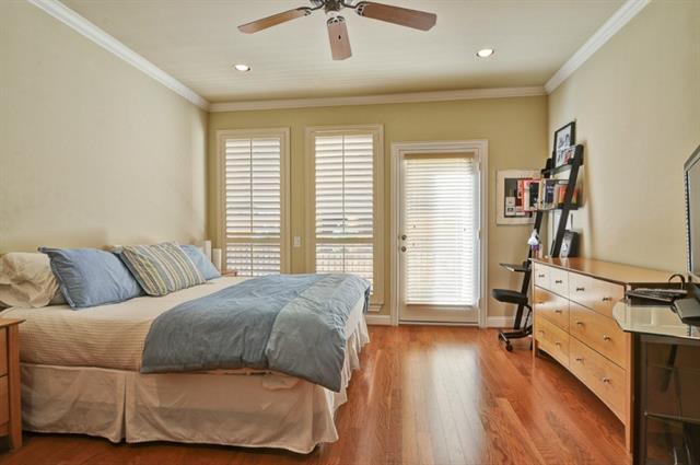 Walking distance to SMU! Beautiful first floor one story condo. Each bedroom has its own full bath and Master has garden tub and separate shower. Hardwoods. Plantation shutters. Kitchen has granite, upgraded appliances and crown molding. Many safety features in building with door cameras, coded entry, private underground gated parking. Entrance to unit is through stairway or elevator from garage.