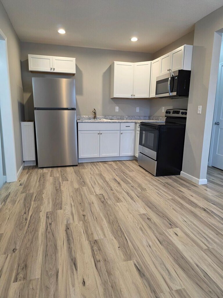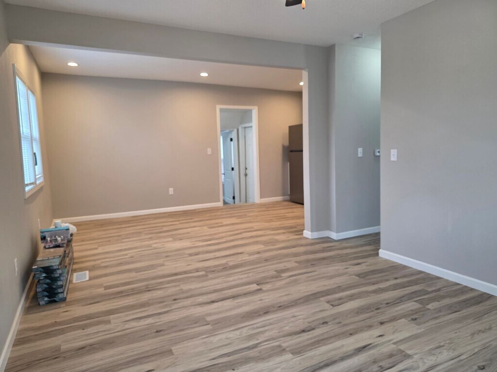 Remodeled two bedroom house available for rent. Also has a partially finished basement for extra space. The house has been completely remodeled with new paint, flooring, kitchen, windows, central AC and bathroom. Come check out this great house with a park like fenced yard and off street parking. Tenant pays Gas/Electric and Water. Tenant is also responsible for all lawn care and snow removal.