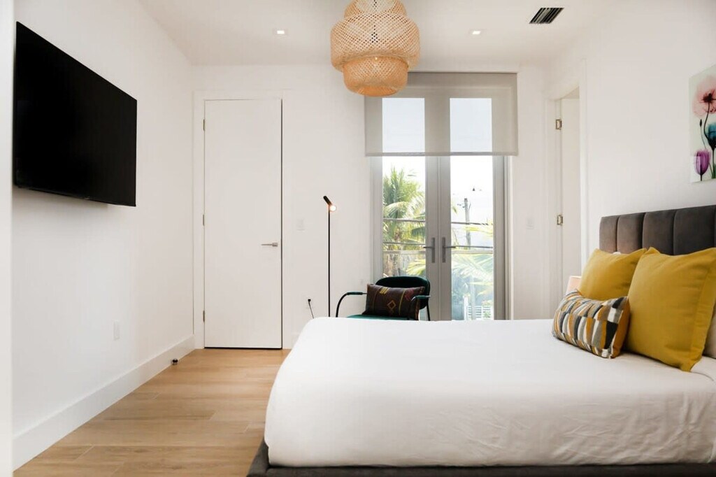 Welcome to The Modernista, a stunning property built in 2022, located in the historic Coconut Grove neighborhood of Miami. This luxurious home features striking design elements, smart technology, and expansive windows that flood the space with natural light. The chef's dream kitchen and a private backyard pool enhance the appeal of this exquisite residence. The Modernista offers a fully stocked kitchen with updated appliances, including a dishwasher, coffee maker, and toaster, perfect for home-cooked meals. The spacious living room provides ample seating and a Smart TV, while the outdoor space boasts a private, non-heated pool and seating area. The pool is regularly cleaned, and a pool net is available for guest use. This pet-friendly property allows one pet with a non-refundable fee of $150 and a maximum weight limit of 30 lbs. Concierge services are available for booking local, third-party services such as boat rentals, chefs, or massages. Housekeeping can be arranged during your stay at an additional cost. Fines may be assessed for excessive cleaning, trash removal, and property damage. Nestled in the charming Coconut Grove neighborhood, this property is surrounded by history and culture. The area is known for its bohemian bungalows, independent bookshops, and locally owned cafes. CocoWalk and the heart of Coconut Grove are just a short 3-minute drive or a 15-minute walk away. The neighborhood offers easy access to Biscayne Bay and several green spaces, including Barnacle Historic State Park and the Vizcaya Museum and Gardens. The property enforces a no-smoking policy, and noise levels must be kept low after 10 PM to respect the neighbors. Violations of house rules or noise complaints may result in cancellation without a refund. Check-in is any time after 4 PM, and check-out is any time before 11 AM. Early check-in or late check-out may be available upon request. The property is equipped with noise detection devices and outdoor cameras for security. Guests must book for the exact number of guests, and any additional visitors require prior approval. Violations incur a $50 fee per person, and stays may be terminated without refund. All guests must be 21 years or older unless accompanied by a parent or pre-approved. No underage drinking, drugs, or vaping are allowed, and any smoke smell will incur a $100 cleaning fee. The work den, located in the upstairs hallway, provides a perfect workspace with seating and a TV. Complimentary Wi-Fi is available throughout the home. [SI]