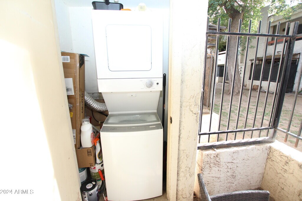 Beautiful 2-bedroom,1-bathroom condo with NEW Kitchen,NEW Bathroom with Bosch Dishwasher,and washer and dryer are in the patio. Located at Points West Condominiums,near Metro Center Mall providing easy access to 101 & I-17,bus stops,the light rail,and restaurants,making commuting a breeze. Covered parking is available. This property is in an ideal location! Metro Center comes full circle! In unit cooling comes from a central hydronic system provided completed. The hydronic cooling,water is chilled and circulated via pump through the system into air handlers in the unit and then back to the chiller. The HOA covers A/C,water,sewer,trash & common area maintenance. Electric bill typically runs $50 per month. Laundry is on the patio storage area.
