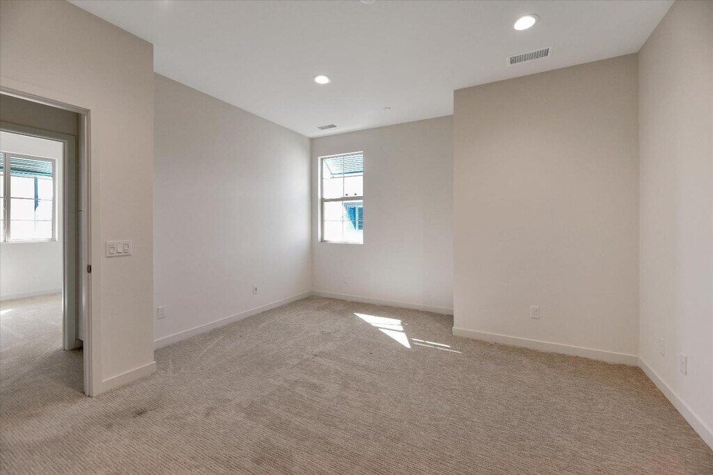 Feel the fresh breeze in this 3-bedroom home packed with an airy interior and a brilliant floor plan! The main level unfolds with an open concept, where the living room, dining area, and kitchen seamlessly merge, creating a perfect space for gatherings and relaxation. The kitchen comes adorned with a charming center island, offers ample cabinet space and comes equipped with modern cooking appliances. Adjacent to it, a laundry room awaits, complete with a washer, dryer, and open shelves for easy organization. A half bath on this level adds to your convenience. Step through the sliding glass doors onto the balcony, where you can savor a view of the quiet street and unwind with a morning coffee or an evening breeze. Ascending to the third floor, you'll discover all three bedrooms. The primary suite features an attached bathroom with a double vanity, a generously sized mirror, and a glass-enclosed shower. It also offers direct access to a spacious walk-in closet. Both secondary bedrooms provide easy access to a well-appointed full bath. Outside, residents are treated to the pleasures of a communal swimming pool. Located within walking distance of a shopping mall, it strikes the perfect balance between relaxation and convenience. MLS # ML82030960