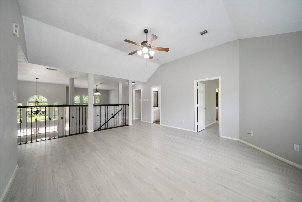 Move-in ready! Stunning 5-Bedroom 3.5-Bath Home in the sought-after Lakes of Falcon Ridge! Move-in ready! No carpet throughout – perfect for easy maintenance and allergies. Elegant wood entryway and wrought iron staircase. Durable tile flooring in the kitchen,breakfast area,and all bathrooms. Chef’s kitchen with granite countertops,tile backsplash,and stainless steel appliances. Ceiling fans. Upstairs two Hollywood bathrooms for added privacy and convenience. Huge covered back patio – ideal for entertaining. No direct back neighbors for added privacy. 3-car garage with a window for natural light. Roof 2024,AC 2018 & 2023,Water Heater 2022. Zoned to the highly acclaimed Friendswood ISD. Close to Centennial Park and Friendswood Junior High. Quiet,family-friendly neighborhood. Don’t miss your chance to own this spacious and stylish home in one of Friendswood’s premier communities. Never flooded. Move in ready! MLS# 9941194