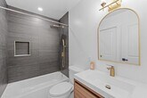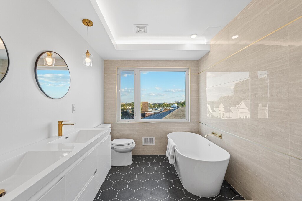 A rental unlike any other, this expansive duplex located in the charming Danforth Avenue area of Jersey City is available now! Boasting an incredibly spacious layout and exceptional design, 312 Garfield Avenue offers a duplex home spread out over 2,400 square feet of living space. Conveniently located just around the corner from the Danforth Avenue light rail station, and only 7 mins from the 440 shopping strip featuring Stop a& Shop, Home Goods, TJ Maxx, This unit offers one of the largest 4 bedroom layouts in Hudson County, with the primary suite measuring roughly 415sqft of luxurious finishes including an en-suite with heated flooring, an exquisite vessel tub, glass enclosed shower, and a dream-worthy custom double vanity. Don't miss this! Sleek 2 tone kitchen cabinets outline a modern kitchen design with tons of counter space complete with waterfall edge quartz. Designer lighting throughout the home offers a warm and inviting ambiance, while the sleek white oak flooring guides you through the lofty spaces. Are you ready for morning coffee on your large balcony? Ample storage space and 2 car parking round out this highly appointed home.