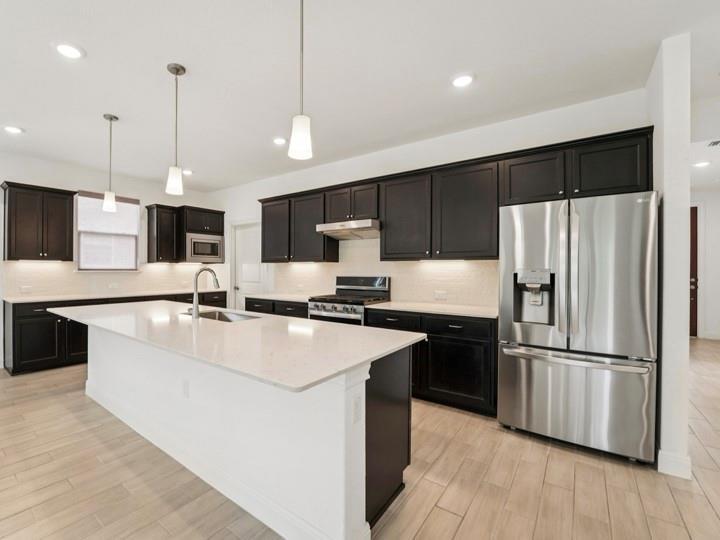 Exquisite White Glove Lease in Sun City Texas Discover luxury living in this stunning 2022 built Del Webb single story at 312 Kitty Hawk Rd, in Georgetown's premier Sun City Texas 55+ community. The newest and nicest home for lease, this 2 bed, 2 bath, 1,851 sq ft gem blends Hill Country charm with modern comforts. Available now lets tour today! Captivating Curb Appeal Warm brick and stone facade framed by new landscaping and vibrant flower beds. Extended 2 car garage. Rare 0.17 acre lot backs to woods and no backyard neighbors! Covered patio overlooks lush fenced yard perfect for pets or gardening. Great serene sunsets. Open-Concept Elegance Your grand mahogany front door opens to a light filled foyer with luxury vinyl plank floors. Expansive great room features include tray ceilings, recessed LEDs, ceiling fan, and floor to ceiling patio doors to outdoors. Chef inspired kitchen: espresso cabinets, white quartz counters, large island, stainless appliances (gas range, French door fridge), walk in pantry. Dining area for easy entertaining. Primary suite: vaulted ceiling, walk in closet with built-ins, spa bath, dual vanities, oversized glass shower, soaking tub, water closet. Secondary bedroom with carpet, fan, full guest bath with tub/shower. Versatile office/den with shutters, mudroom with sink, energy-efficient low-E windows. Premier 55+ Amenities Ranked #1 active adult community: 6 pools, 3 fitness centers, craft studios, golf, tennis, pickleball clubs. Walk to new pickleball courts! New amenity center just 1.2 mi away. Near Georgetown's dining and shopping. HOA membership included with rental (badges at tenant expense). White Glove Service Effortless living: PROVIDED FOR YOU are professional mowing/landscaping, quarterly HVAC filter replacements, full HOA access. Just unpack and enjoy! Priced competitively for immediate move in. Contact us this Sun City paradise won't last!