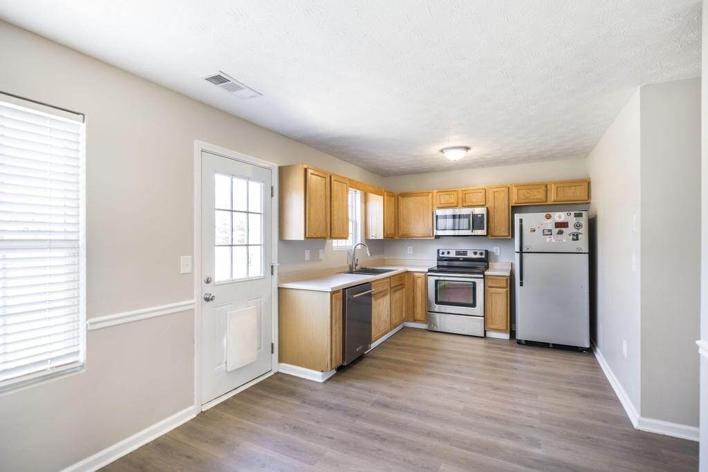 This charming 4-bedroom, 3-bath two-story home offers approximately 1,500 sq ft of well-designed living space. The main level features a convenient bedroom and full bath—perfect for guests or a home office. Upstairs, you'll find the spacious primary suite along with two additional bedrooms. Enjoy plenty of outdoor space in the backyard, ideal for relaxing or entertaining. Move-in ready with recent updates including select new flooring and fresh paint. Schedule your showing today! This charming 4-bedroom, 3-bath two-story home offers approximately 1,500 sq ft of well-designed living space. The main level features a convenient bedroom and full bath—perfect for guests or a home office. Upstairs, you'll find the spacious primary suite along with two additional bedrooms. Enjoy plenty of outdoor space in the backyard, ideal for relaxing or entertaining. Move-in ready with recent updates including select new flooring and fresh paint. Schedule your showing today!