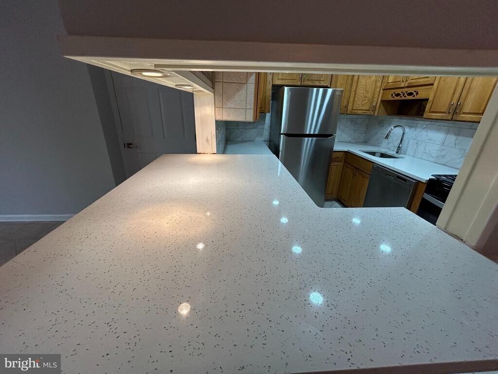Located in the top ranked Tredyffrin Easttown school district. Here's a ground level 2 bedroom 2 bath condo/apartment with its own private entrance and its own washer & dryer. This BEAUTIFULLY RENOVATED, freshly painted and professionally cleaned, stunning, updated END-UNIT CONDO is available for rent in the desirable Old Forge Crossing community. Open Kitchen with a large island, elegant and upscale QUARTZ COUNTERTOPS, marble like design tiled backsplash, recessed lights, stainless steel appliances including a BRAND NEW OVEN- GAS COOKING RANGE and tiled floor. It flows into Dining and Living Room with beautiful tiled flooring, crown molding and wainscotting continuing down the hallway. Two upgraded full bathrooms and two bedrooms with upgraded blinds complete this spacious condo that has laundry included inside the unit. It also features a LARGE WALK-IN CLOSET in the hallway and another LARGE WALK-IN CLOSET attached to the Master Bedroom. There is a spacious closet in the living room and a linen closet in the hallway. Old Forge Crossing has private access to the Chester Valley Trail. It's close to the Devon train station (R5) and bus routes to the city, 202, 276, 422 as well as shopping such as Trader Joes, Whole Foods, Wegmans and the King of Prussia mall and many nice restaurants. Close to Lifetime Fitness club and LA Fitness gym in the Town Center. Landlord pays the monthly condo fee so you can enjoy the pool and tennis courts, sidewalks as well as the clubhouse in this beautiful setting. Water, and gas for cooking and dryer is included in the condo fee so tenant does not pay for these. Tenant has to pay for gas for heat, all electricity use, annual sewage fee and cable/internet. Tenant to pay a one-time move-in fee 350 dollars required by the condo office. Tenant needs to purchase an annual Renter's Insurance policy. Tenant must have excellent credit and adequate income. No smoking, NO PETS ALLOWED. Owner is a licensed PA realtor.
