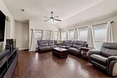Welcome to this beautifully maintained 4-bedroom, 2-bath home that combines comfort, functionality, and energy efficiency. The charming brick-and-stone exterior offers great curb appeal, complemented by a well-kept front yard and inviting entry. Inside, you’ll find an open and airy layout with abundant natural light. The spacious kitchen features ample cabinetry, generous counter space, a center island with seating, and stainless steel appliances—perfect for everyday living and entertaining. The kitchen flows seamlessly into the living and dining areas, creating a warm and welcoming atmosphere. The primary bedroom is a relaxing retreat with plenty of space and natural light, while the additional bedrooms are well-sized and versatile for guests, a home office, or hobbies. Durable flooring and neutral tones throughout make the home move-in ready. Additional highlights include solar panels for energy efficiency and lower utility costs, as well as extra storage space in the back, ideal for tools, seasonal items, or outdoor equipment. This home offers a great balance of style, space, and practicality—perfect for comfortable everyday living.