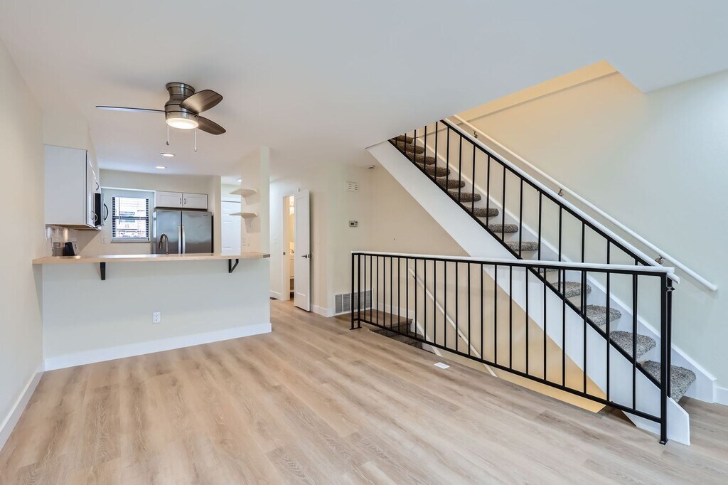 This beautifully updated 2-bedroom, 2.5-bath townhome offers 1,545 square feet of modern living across three spacious levels. Step inside to an open floor plan that blends comfort and functionality, featuring hardwood flooring, and a cozy tiled fireplace as the focal point of the living area. The light-filled kitchen includes crisp white cabinetry, stainless steel appliances, butcher block countertops, and a breakfast bar perfect for casual dining. A convenient powder room is located on the main floor, while sliding doors open to a private patio—ideal for relaxing or entertaining outdoors. Upstairs, the primary suite is bathed in natural light and offers generous space and mirrored closet doors. The fully finished basement features a versatile rec room or third non-conforming bedroom with closet space and a beautifully updated 3/4 bath—perfect for a home gym, office, or guest suite. Preferably looking for a 2 year lease. Additional highlights include: In-unit washer & dryer Two reserved parking spaces Modern light fixtures & ceiling fans throughout Pet-friendly outdoor area Located just steps from Wright Park, Union Ridge Park, and Union Square Park, and within walking distance to the light rail, St. Anthony’s Hospital, Red Rocks Community College, and local dining and shops—this townhome offers unbeatable convenience in a thriving Lakewood location. A must-see home that checks all the boxes—schedule your tour today! Move-In Details: Security Deposit: One Month's Rent Pet Deposit: $300 (if applicable) Fees Due at Move-In: Lease Admin Fee: $285.00 Utility Admin Fee: $75.00 Pet Admin Fee $100 (if applicable) Si tiene preguntas o necesita asistencia en español, no dude en comunicarse con nuestra línea al . For more available rentals, visit Walters & Company is a Colorado-owned and licensed real estate company and an Equal Housing Provider. Call TODAY to schedule a showing!!!