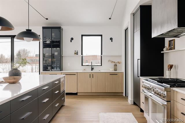 Experience luxury in this new construction modern Scandinavian-inspired ranch home in the heart of Golden, Colorado. This impressive 5,118 square foot residence features 4 spacious bedrooms, 3.5 luxurious baths, and a fully finished basement. The great room boasts a stunning 60" fireplace with a tile surround, complemented by a wood slat wall and lower cabinets. The dining room showcases a dry bar with steel shelves, lower cabinets, and a stylish tile backsplash. The gourmet kitchen is a chef's dream, featuring high-end countertops, Bellmont cabinetry, and Thermador appliances. A convenient walk-in pantry also includes a built-in Miele coffee maker and sink. The primary bedroom serves as a sanctuary with a wood headboard accent wall and a stylish steel and glass barn door leading to the lavish five-piece bath. The basement hosts a generous bonus room with a wet bar, a gym, two additional bedrooms, a bathroom, and ample storage. This home also includes a three-car tandem garage and is located in the desirable Applewood community, just moments from the Applewood and Rolling Hills Golf Courses, Lifetime Fitness, and various shopping and dining options. The generous lot offers ample space to unwind in this safe, established neighborhood close to mountain adventures in Golden. Backyard landscaping will be completed within 30 days of renter's occupancy. Get $1500 off your first month's rent if you sign a lease by the end of November. APPLICATION PERAMETERS: - Income-to-rent ratio: 2x (negotiable) - Credit score: 650 or above (negotiable) - First and last months rent + security deposit, due at signing - Renters insurance required - NO SMOKING ALLOWED PET POLICY: - Up to 2 pets allowed, no cats. Single Family Residence MLS# 6139742