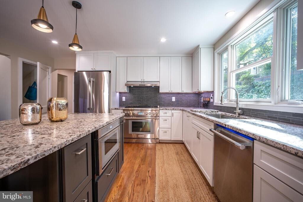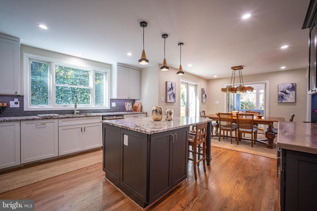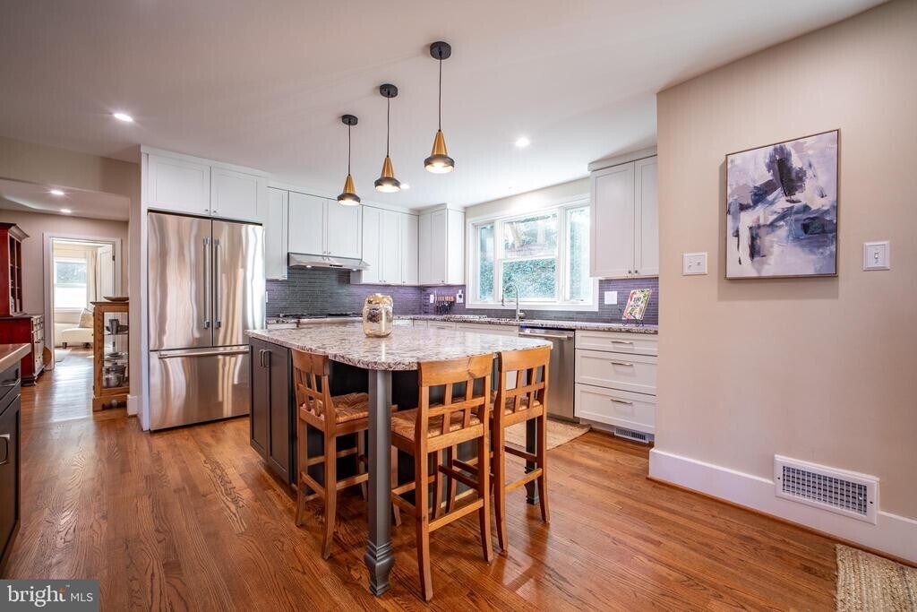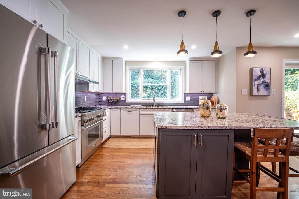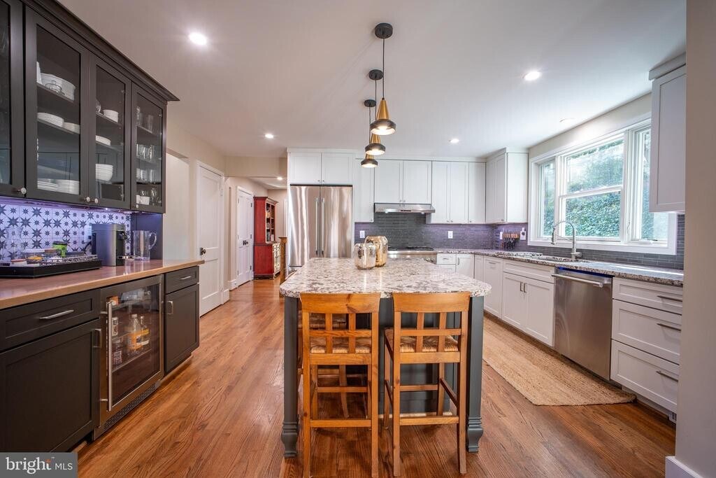 This fully furnished, extensively updated 4-bedroom, 3.5-bath home in the prestigious Bellevue Forest neighborhood combines sophisticated modern renovations with thoughtful furnishings and an unbeatable location—where leafy tranquility meets convenient access to Washington, D.C. Recently enhanced with a brand-new ground-level primary suite addition and complete renovations throughout the main and upper levels, this residence offers the best of contemporary comfort with the ease of turnkey living. The primary retreat features a spacious walk-in closet and exclusive access to a private covered porch, creating a serene outdoor escape just steps from your bedroom—perfect for quiet mornings with coffee or peaceful evenings at day’s end. The heart of the home showcases an open-concept design, where a beautifully updated, fully equipped kitchen—with island seating for three, a full-size refrigerator, and a beverage fridge—flows seamlessly into the furnished dining and living areas. This inviting layout is ideal for hosting friends or enjoying relaxed evenings at home. Freshly renovated bathrooms throughout add to the home’s polished, effortless appeal. Three additional well-appointed bedrooms come furnished and ready, while a bright sunroom offers flexible space for a second office or guest quarters. A separate formal office provides dedicated workspace, complete with everything you need for productive days. Step outside to discover why this home is perfect for those who love to entertain or unwind in style. A furnished screened porch with fire table creates a cozy, weather-protected haven for three-season enjoyment, while the expansive patio delights with three distinct seating areas, a built-in grill station, and a fire pit. The lower-level recreation roomoffers casual furnished space for game nights, complete with a foosball table, and the three-car garage provides abundant parking and storage. Location sets this residence apart. Bellevue Forest is an upscale, tree-lined enclave where generous lots and mature landscaping create a sense of peaceful seclusion. Nearly half the neighborhood borders the spectacular 70-acre Potomac Overlook Regional Park, with its walking trails, demonstration gardens, and nature center. Here, you’ll find the rare combination of natural beauty and urban convenience—an easy commute to downtown D.C., yet a community that feels worlds away. Weekend mornings begin with woodland walks; weekday evenings conclude on your private porch off the primary suite. Offered fully furnished for immediate occupancy, your sophisticated, turnkey Bellevue Forest retreat awaits.