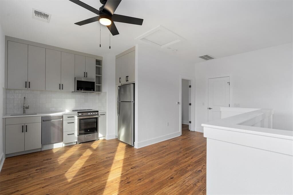 Welcome to 3120 Tom Miller St #Casita, a charming and cozy 1-bedroom, 1-bathroom unit located in the highly sought-after Mueller neighborhood of Austin, TX. Available for move-in on March 16th, this second-story casita sits above the garage of the main house and offers a private entrance around the back for added peace and privacy. With no carpet throughout, this recently renovated space features spacious living areas, ceiling fans, and modern finishes that create a comfortable and inviting atmosphere. The unit comes fully equipped with essential appliances, including a refrigerator, microwave, dishwasher, gas stove/cooktop, and a stacked washer and dryer—perfect for enjoying modern, low-maintenance living. Enjoy the convenience of parking right outside your door, with additional alley parking available for guests. While there is no yard maintenance required, residents have access to the incredible Mueller amenities, including 140 acres of green space, parks, hiking trails, playgrounds, a dog park, and two pools. The location is unbeatable—just over a mile from The University of Texas, less than three miles from downtown Austin, and minutes from Bergstrom Airport and The Domain. All utilities will be billed back at 25% for the casita, and internet will be billed back 50/50. Tenants are required to enroll in the Resident Perks Program at $25 per month per household. MLS ID 6239103