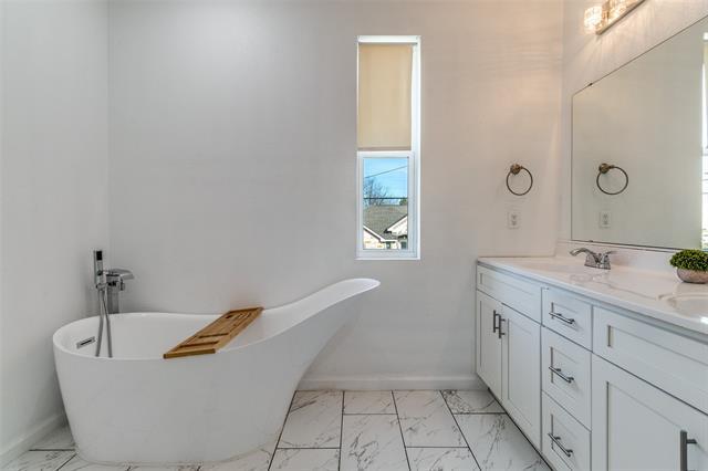 Welcome to 3121 Rutz — a tastefully built, modern home in the heart of West Dallas, designed for both everyday living and effortless entertaining. High ceilings and expansive windows flood the space with natural light, while a collapsible slider in the living room opens seamlessly to the backyard, creating true indoor-outdoor living. Out back, enjoy a large covered porch perfect for dining and hosting, plus a spacious turfed yard that’s low-maintenance and ideal for relaxing or entertaining. Inside, you’ll find a convenient half bath downstairs, surround sound speakers in the main living area, and a thoughtfully designed mudroom off the garage. The two-car garage is spacious with comfortable clearance on both sides. Upstairs, all three bedrooms are well-proportioned, with a breathtaking primary suite featuring oversized windows, abundant natural light, a soaking tub, stand-up shower, and a windowed bathroom. A washer and dryer are located upstairs for easy access, along with a balcony accessible from both the primary suite and hallway — the perfect spot for morning coffee. The location truly sets this home apart — just minutes from Trinity Groves, Love Field, downtown Dallas, and Bishop Arts, with quick access to some of the city’s best restaurants, nightlife, and major work hubs. Whether you’re commuting, meeting friends for dinner, or enjoying a night out, everything Dallas has to offer is right at your fingertips.