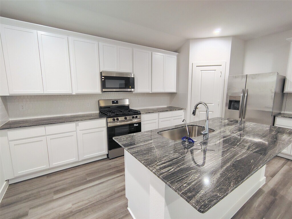 Brand new single-story home with 5–6 bedrooms,3 full baths,and a study! This spacious floor plan offers an open-concept living area with a large family room,dining,and kitchen featuring waterfall granite countertops,white cabinets,stainless steel appliances,and a walk-in pantry. Enjoy lake views from the covered patio. The private primary suite includes a large walk-in closet and an oversized shower. A guest suite with its own bath provides extra comfort. Washer,Dryer and refrigerator included! Lake view! MLS# 62873648