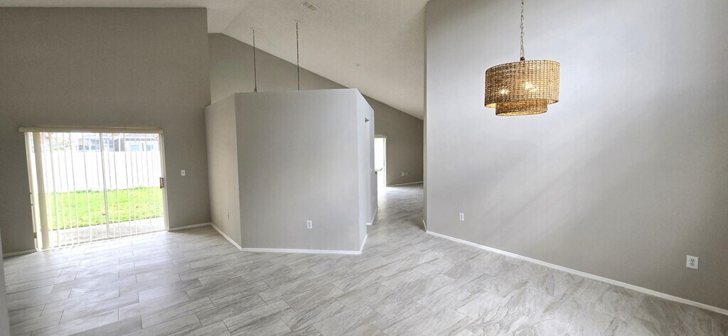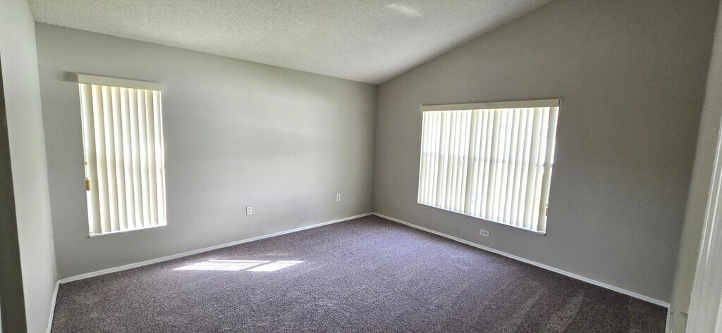 This charming 4-bedroom, 3-bath home in the Strafford Park community in Kissimmee offers 2,111 square feet of comfortable living space. It comes equipped with a glass top stove, new side-by-side refrigerator, new microwave, dishwasher, new washer, new dryer and vertical blinds. The layout includes two living spaces, a separate dining area, and a kitchen nook. Large master bedroom with 2 walk-in closets. Ceramic floor tile in living areas and new carpets in the bedrooms. Vaulted ceilings. Community Park that offers a playground and soccer field, all complemented by picturesque water views. Enjoy the convenience of a two-car garage and driveway. Monthly rent is $2,475. The community offers a playground and serene lakefront views, ideal for outdoor enjoyment. Small pets under 25 lbs. are welcome with a $250 non-refundable fee and breed restrictions. 12-month lease terms make this home ready for you to move in and start living comfortably today.