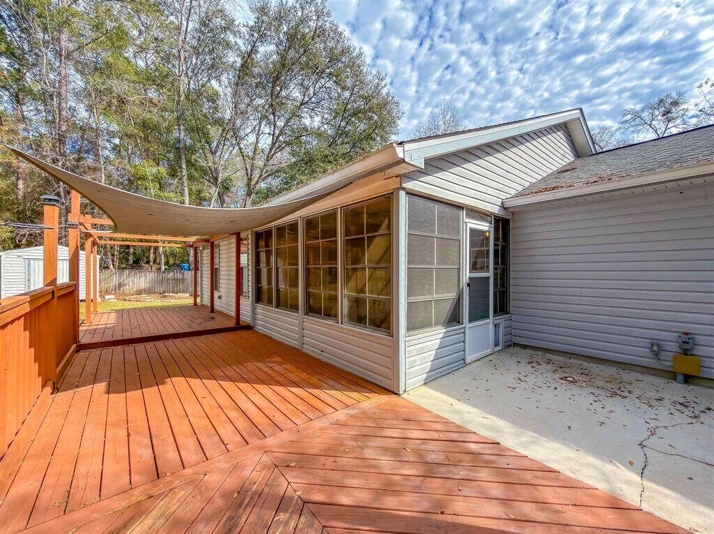 SO many great features you just don't find in a rental property! 3/2 home situated on a oversized lot at the end of a cul-de-sac. Large driveway offers plenty of parking plus a one car garage. Recently remodeled throughout with vinyl plank flooring,new cabinets,butcher block countertops and stainless appliances. All 3 bedrooms have walk in closets,the master bath features a walk in shower,second bathroom has a jetted tub. Heated and cooled 14x12 sunroom adds versatile bonus living space- would make a great home office,playroom,hobby room,etc. Huge privacy fenced backyard with 2 storage sheds and a spacious deck with pergola- perfect for entertaining. Lawn care included; pets considered with non-refundable pet fee. This one won't last!