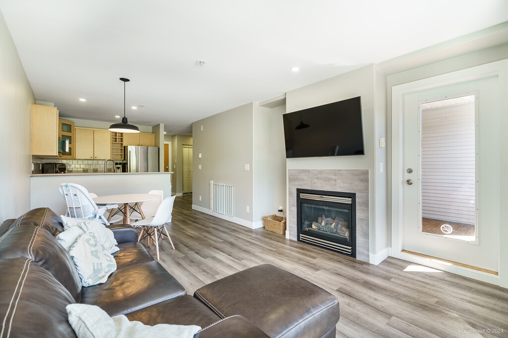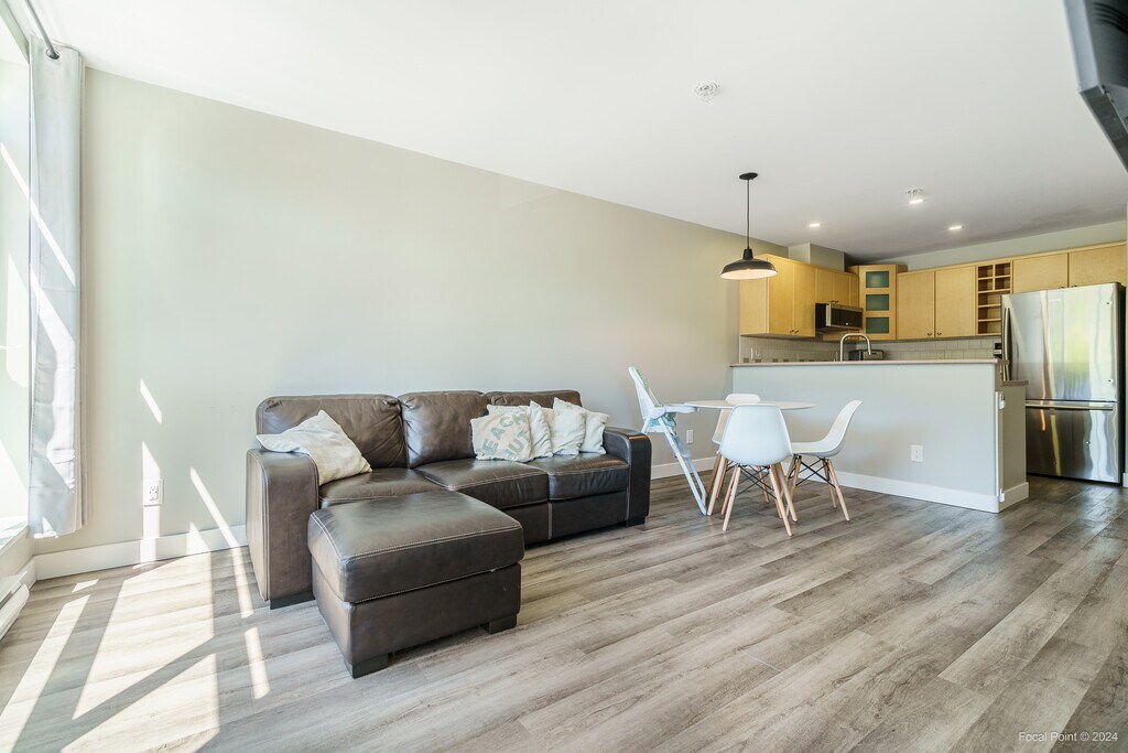 Charming, Pet-friendly 1-Bed, 1-Bath Unit with a Large Den Nestled just a 7-minute stroll from major transit hubs like the West Coast Express, Moody Center, and Inlet Centre stations, this charming, pet-friendly 1-bedroom, 1-bath unit with a large den at 3122 Saint Johns Street offers a delightful retreat to call home.Residents enjoy an array of amenities including EV charging, a car wash, gym, sauna, indoor pool, hot tub, an inviting green courtyard, and a spacious kid's playroom.Conveniently located in central Port Moody, the residence offers easy access to Brewer's Row, diverse shops, restaurants, an elementary school, daycare facilities, and scenic Rocky Point Park—all within walking distance. Public transit options abound with Moody Center and Inlet SkyTrain stations nearby, and bus routes connecting to SFU Burnaby campus, Belcarra Regional Park, White Pine Beach, and the tri-cities' extensive hiking trails.Building Amenities: GymPoolHot TubSaunaPlayroomEV ChargingGreen SpaceParcel Box The journey begins in a gourmet kitchen equipped with stainless steel appliances—including a dishwasher and garburator—alongside a spacious refrigerator, sleek glass stovetop with a self-cleaning oven, ample counter space, and a convenient breakfast bar. This space seamlessly transitions into a generous living area that extends to a sizable covered balcony, perfect for outdoor relaxation.Inside, appreciate the elegance of easy-to-maintain luxury vinyl flooring throughout. A cozy gas fireplace in the living room adds warmth, included in the rent. The suite also features in-suite laundry, LED lighting, tamper resistant plugs, a secure underground parking space, and ample visitor parking. Natural sunlight fills both the living room and bedroom, which offer direct access to a private balcony. 1 Year LeasePet Friendly: up to 25lbsUtilities/Fees Included: Move-in/out, Heat, Water, Taxes, MaintenanceElectricity not included