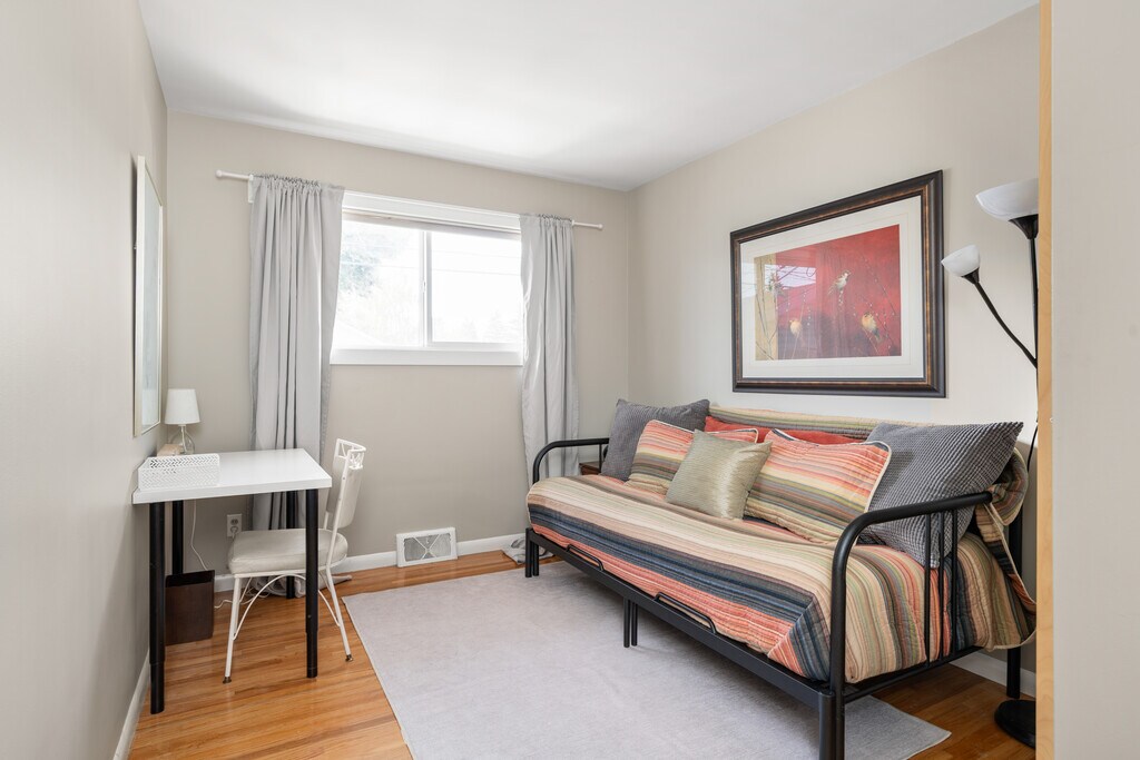 The Ruby Rose | Your Cozy Calgary Stay Welcome to your home away from home in the heart of Glenbrook, central Calgary—the perfect spot for professionals, students, and anyone needing a comfortable, convenient base for a few months. Our property is designed with your extended stay in mind, offering a welcoming atmosphere and unparalleled access to everything this vibrant city has to offer. Thoughtful Interior Living for Your Comfort Step inside and feel right at home. This fully furnished property is more than just a place to sleep—it's a space designed for living, working, and relaxing. A Bright, Open Living Space: The main living area is designed for comfort. Kick back on the plush sofa with a good book or catch up on your favorite shows on the smart TV. The open layout ensures a spacious and airy feel, whether you’re entertaining a guest or enjoying a quiet night in. Smart TV and High Speed Wifi available. Fully Equipped Kitchen: Forget eating out every night. The kitchen comes fully stocked with everything you need to prepare your own meals, from morning coffee to a full dinner. Enjoy modern appliances, ample counter space, and all the cookware and dishes you'll need to feel at home. Dedicated Workspace: For those working or studying remotely, we've included a designated desk area. You'll have a quiet, comfortable spot to focus, complete with high-speed internet to ensure you're always connected. The Daybed can be extended into a King Bed. Cozy and Private Bedrooms: After a long day, retreat to a peaceful bedroom. Each room is furnished with a comfortable bed and quality linens, providing a private sanctuary for rest and rejuvenation. The Perfect Location: A Glenbrook Advantage Nestled in the desirable southwest quadrant, Glenbrook provides the perfect blend of suburban tranquility and urban accessibility. You'll enjoy a vibrant, residential neighborhood while being just minutes away from major hubs and attractions. Proximity to the Mountains: Planning weekend getaways to the Rockies? Our location provides a direct and easy escape to the mountains. The stunning landscapes of Banff and Kananaskis are just an hour's drive away, making it easy to hit the slopes or explore breathtaking hiking trails on a whim. Downtown Commute: A quick and simple drive or C-Train ride puts you in the heart of downtown Calgary. Whether you're working in the core, attending events, or exploring the city's cultural scene, your commute will be a breeze. Education and Healthcare Hub: This property is a fantastic choice for students, visiting professors, or medical professionals. We are situated a short distance from Mount Royal University, the University of Calgary, and major medical centers like the Foothills Medical Centre and Rockyview General Hospital. Parks and Recreation: Glenbrook itself is home to beautiful green spaces, including Glenbrook Park, perfect for a relaxing stroll or a quiet afternoon. The area is also close to the Bow River Pathway system, offering endless opportunities for walking, running, or cycling. For even more outdoor fun, you're near large recreational areas and sports facilities. Experience Calgary life at its best. Book your mid-term stay with us and discover why Glenbrook is the perfect home base for your time in the city.