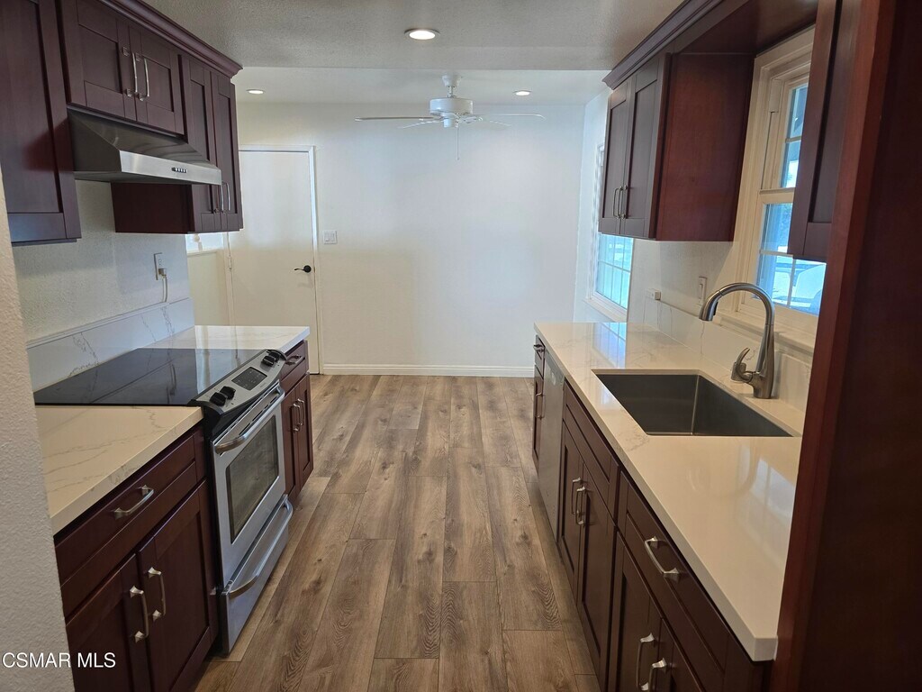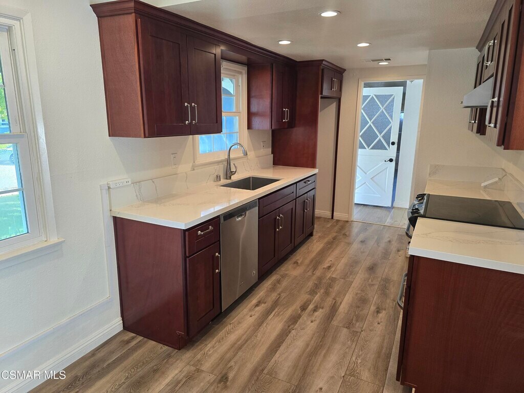 Great curb appeal on this cute one story 4 bedroom two bath home in the heart of Thousand Oaks. Close to shopping and schools. Home has wood like flooring throughout, an updated kitchen and 2 baths.A newly fenced yard and large brick pario area offers room for entertaning. A. 2 car garage and large driveway is attached and direct house to the house.