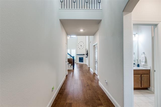 Welcome to this stunning 2021 built home, where beauty and comfort come together! This stunning Beazer Homes Summerfield floor plan located in the highly sought-after Erwin Farms master-planned community offers everything today's buyer is looking for. This spacious two-story home offers 3,020 sq ft of beautifully designed living space, featuring 4 bedrooms (2 downstairs), 3 full bathrooms, a private study, a media room, a bonus room, and a 2-car garage. The gourmet kitchen is a dream with a large island, granite countertops, a butler’s pantry, and a gas range. The open flow from Kitchen to Living Room is enhanced by the stunning open ceilings with plenty of natural light! Enjoy cozy nights at home by the fireplace or on your extended back patio with Texas-sized views with no neighbor behind. Additional features include a mud room, window seat in breakfast nook and elegant shutters throughout. The primary suite, located on the main floor, includes dual vanities, a soaking tub, a walk-in shower, and a spacious walk-in closet. An additional second downstairs bedroom provides great flexibility if an additional office is needed or a perfect guest suite. The beautiful open staircase railings to the upper level are elegant design features that welcome you upstairs. Upstairs there are two additional bedrooms, a game room, and a media room—ideal for entertainment, work, or relaxation. Ideally situated just minutes from Erwin Park’s scenic walking and biking trails, and close to major shopping and dining destinations. This location also provides quick access to Hwy 75 making it a perfect location!
