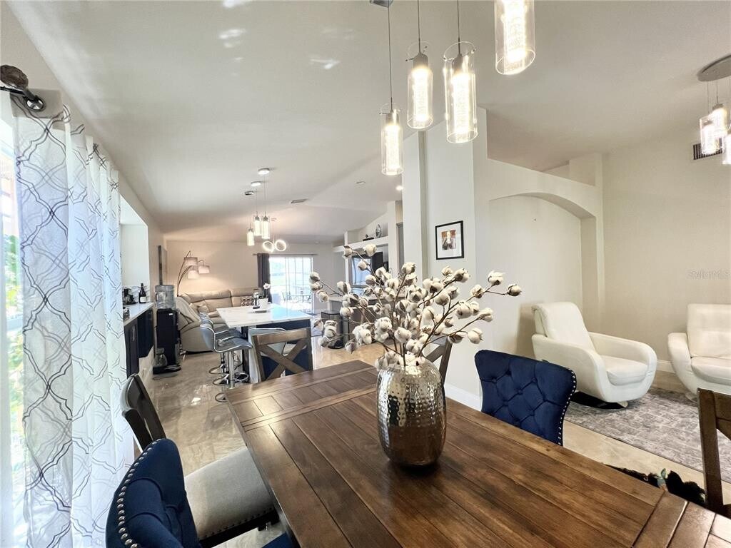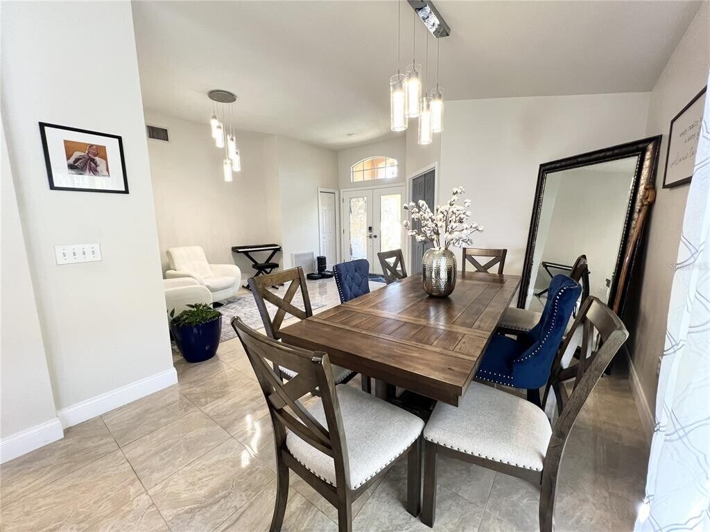 Experience the best of Wesley Chapel living in this updated 1,833-square-foot residence,located in the gated Rensselaer Village within the Wrencrest section of Meadow Pointe III. The home makes a grand first impression with beautiful double glass front doors that open into a spacious,light-filled layout defined by vaulted ceilings and low-maintenance tile flooring throughout. A dedicated office with French doors is ideally located at the front of the home for a quiet workspace,while the heart of the house features an open-concept design. The upgraded kitchen includes a large center island,premium quartz countertops,a decorative tile backsplash,stainless steel appliances,and a gas range. Designed with a split floor plan for maximum privacy,the oversized primary suite is tucked away at the back of the home and features a large walk-in closet. The primary ensuite bath includes granite countertops with dual sinks,a relaxing garden tub,a separate walk-in shower,a private toilet area,and a convenient door providing direct pool access. On the opposite side of the home,you will find two additional bedrooms and a second full bathroom with a shower. A dedicated laundry room adds to the home's functional design. The highlight of this home is the exceptional outdoor space,making it perfect for entertaining and large gatherings. Step through the double sliding glass doors to a covered back porch and an expansive screened-in lanai. For added safety and versatile entertaining,a separation screen door divides one side of the patio from the heated salt-water pool area,providing a secure barrier for children and pets while allowing for a seamless flow during social events. This outdoor oasis offers a front-row seat to Florida’s natural beauty,with unobstructed views of the pond and conservation area where you can enjoy local wildlife and breathtaking evening sunsets. The property features a low-maintenance yard and a rare 3-car garage. Residents enjoy resort-style amenities,and this location is exceptionally convenient with Wiregrass Elementary,Dr. John Long Middle,and Wiregrass Ranch High all located right outside the community gate. Minimum 12-month lease required; small pets may be considered with owner approval. MLS# TB8481877
