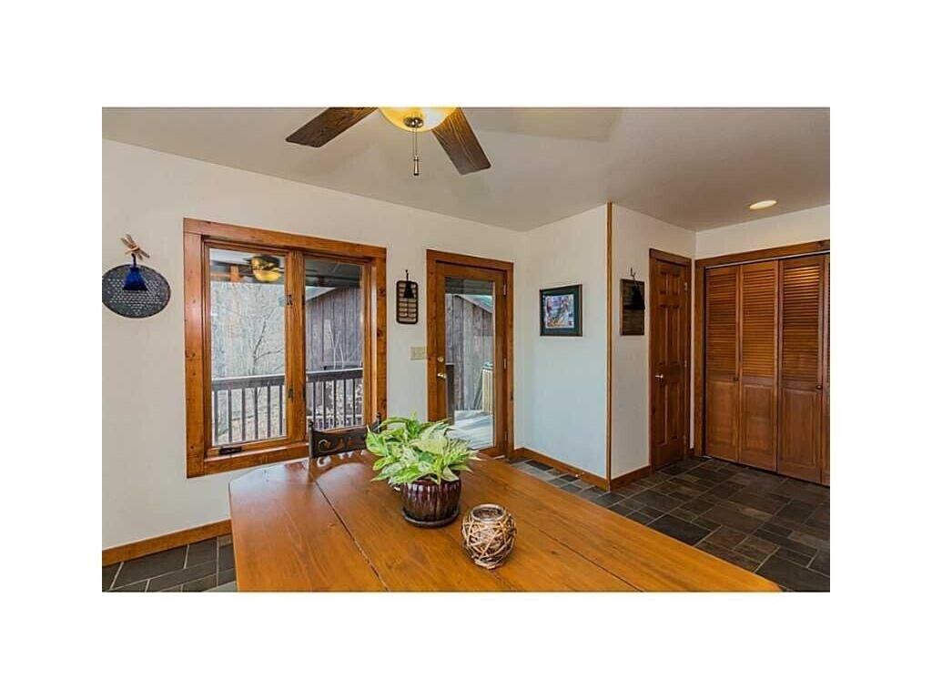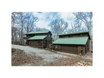 4BR, two-1/2 BA. Pine flooring. Master BR/BA/office upstairs. Lots of built-ins, deck off master. Main level: KT/DR/FR w/wood burning stove, beautiful sunroom, utility, & walkout 2nd level deck. Basement level has 2 BR, sitting room, BA w/ storage room. Breezeway includes countertops w/ sink, cabinets, & room for mini fridge. Downstairs BA is a storm shelter, enclosed 8" think cement walls. Walkout deck in 1 downstairs BR. Sits on 16 acres of woods. 30x24 detached garage w 1/2 BA & loft w./ storage. MLS# 1333297