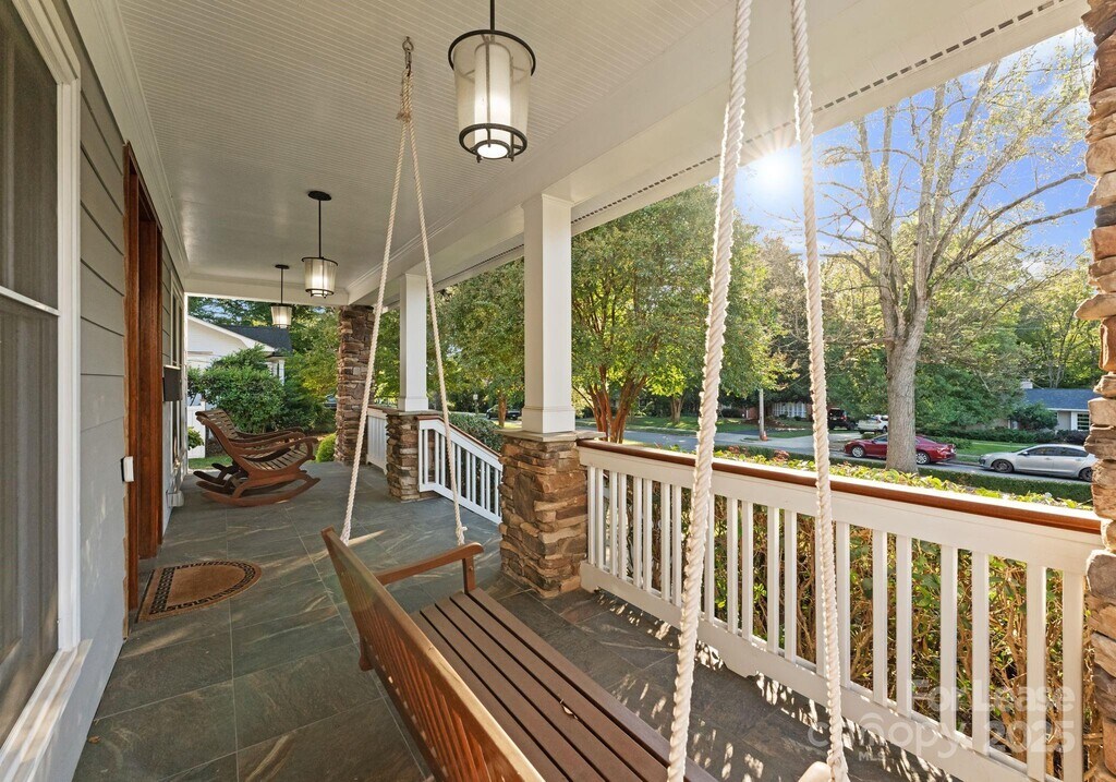 Covered porch and private yard offer a serene outdoor retreat which includes an amazing pool. Conveniently located near greenways,local shops,and top dining options,while maintaining the sense of a quiet residential street. Excellent school access: Selwyn Elementary,Alexander Graham Middle,Myers Park High. Stone & hardboard siding gives curb appeal with low-maintenance durability
