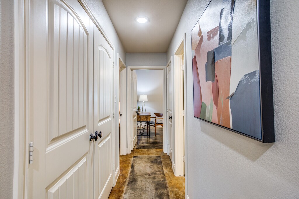 AVAILABLE: JUNE 1, 2027 DESCRIPTION: Fabulous downstairs duplex walking distance to TCU. Open floorplan between kitchen, dining room, and living room. Common areas and bedrooms feature stained concrete floors. Kitchen includes breakfast bar, granite countertops, stainless steel appliances. Large bedrooms with walk in closets. Master bath includes jacuzzi tub. Lawn care provided. 3 covered parking spots. ** Both homes in duplex available. Perfect for a group of 8. ** FEATURES: central heating & air conditioning, high speed internet, cable ready, dishwasher, microwave, range, refrigerator, full size washer & dryer, walk-in closets, porch, security system See more homes @