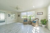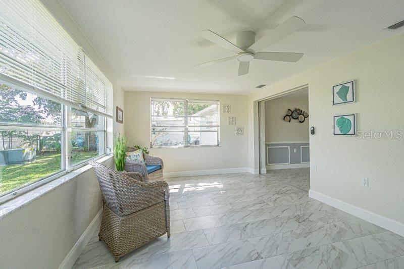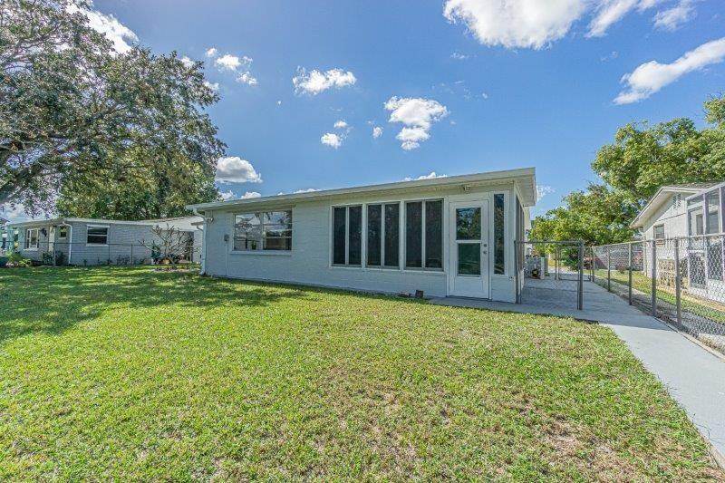 One or more photo(s) has been virtually staged. Enjoy beautiful pond views in this fully updated,move-in-ready home. From the bright modern ceramic tile floors in elegant grayish tones to the stylish kitchen that features light cabinetry,stainless steel appliances,and a sleek sink,all designed for both beauty and functionality. The updates continue throughout the home,including tastefully renovated bathrooms and durable,low-maintenance stone countertops. The oversized garage includes a washer and dryer,along with a stainless steel utility sink conveniently near the second bathroom. This home features also two bonus spaces: a Florida room that can easily be converted into a third bedroom,and an enclosed lanai overlooking the peaceful pond,creating a relaxing and a cozy retreat or a home office.(168sf additional- to the total square footage) A chain-link fence provides added safety without blocking the serene water view. Outside,a spacious paved driveway offers parking for more than four cars,complemented by a well-maintained lawn,an irrigation system in place and tastefully landscaped front and backyard. Best of all,this home is very affordable to move into—just one month’s security deposit and the first month’s rent required. MLS# TB8486976
