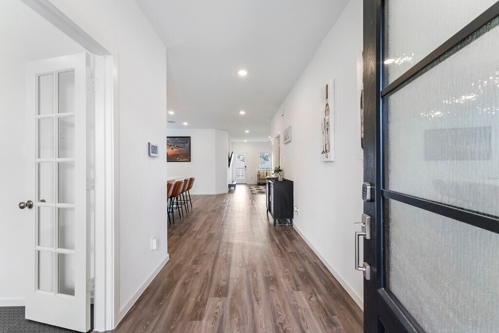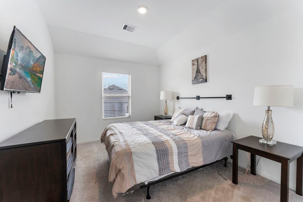 Fully furnished single-story home in Ladera Creek! This open-concept home features a modern kitchen with a quartz island,beautiful cabinetry,and a spacious family room perfect for entertaining. The primary suite offers a walk-in closet,double sinks,and a large walk-in shower. Includes TVs,washer,dryer,refrigerator,and all appliances. Lawn service is included. Additional features include vinyl plank flooring,modern finishes,a home office with workout equipment,and a sprinkler system for the front and backyard. Conveniently located near I-45 and close to parks and a playground in the Ladera Creek community. MLS# 77961905