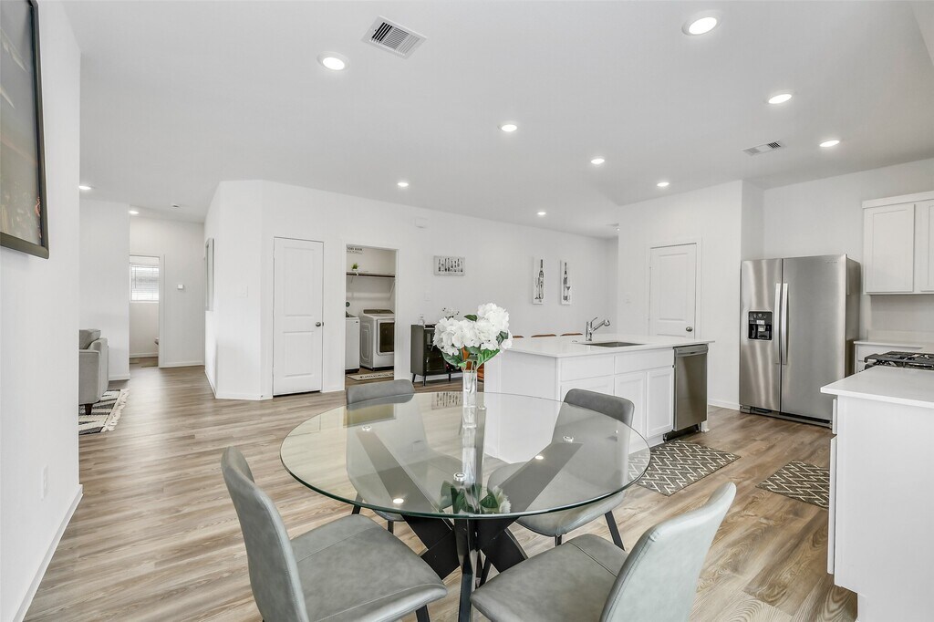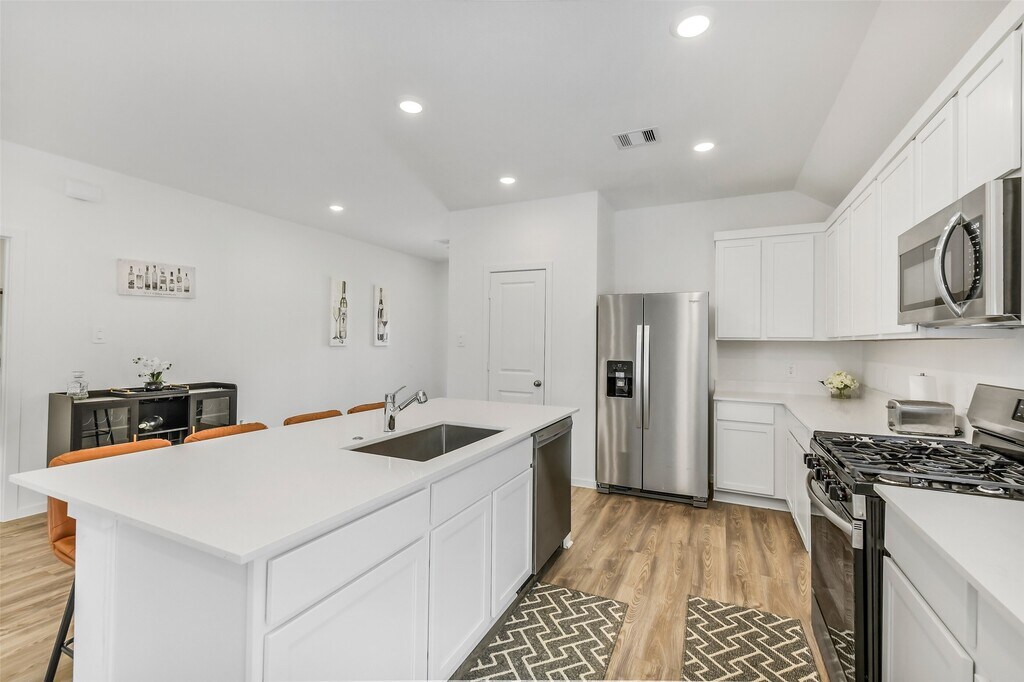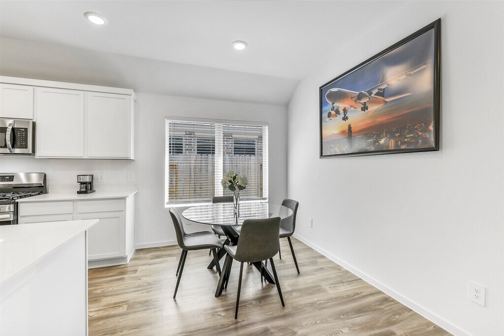Move-in ready and FULLY FURNISHED,this 3-bedroom,2-bath Ladera Creek home offers effortless living with stylish décor,TVs,and all essential appliances—including washer,dryer,and refrigerator—already in place. UTILITIES (electricity,water,gas) and LAWN SERVICE ARE INCLUDED! The open-concept layout features a quartz island kitchen with pantry and abundant cabinetry,flowing into the family room for easy entertaining. The primary suite boasts a walk-in closet and spa-like bath with double sinks and a large shower. Two secondary bedrooms,a dedicated home office,and a full bath complete the thoughtful floor plan. Vinyl plank flooring,crown molding,and modern finishes add comfort and appeal. A sprinkler system covers the front & back yards. Conveniently located near I-45,shopping,and dining. No pets. Available for six-month or one-year lease. MLS# 37171946