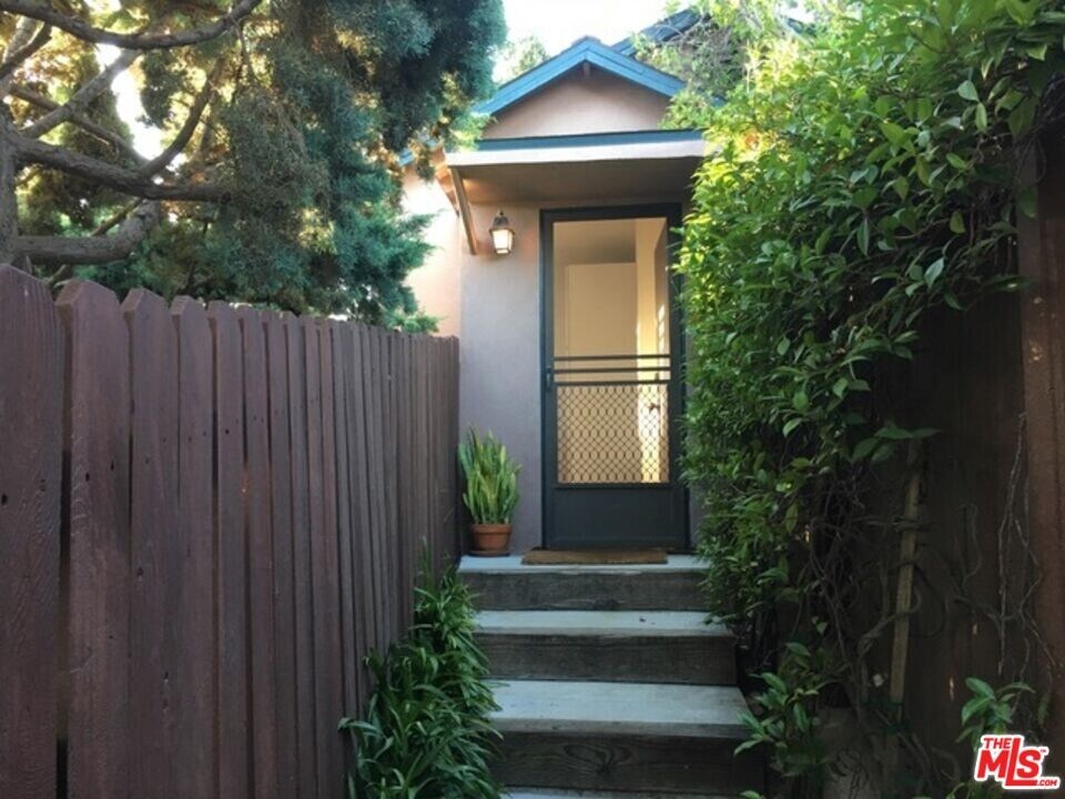 Freestanding green guest house with private entrance for single occupant. On a hill surrounded by trees and plants. Quiet residential neighborhood. Walking distance to coffee, shopping, restaurants, yoga, Santa Monica College. Ten minutes from the 10/405 freeway interchange. Main room has wonderful light from large windows, a high ceiling with fan, and westerly ocean breezes. Freshly painted. Washer / dryer installed. Hardwood floors throughout, including foyer. Very clean. Ceramic tile floors in kitchen and bathroom. Kitchen includes stove, refrigerator, garbage disposal, bathroom with shower. Easy street parking. Tankless water heater, whole house water filter. Radiant heating, air conditioning. Paid utilities include water, gas, solar-powered electricity, refuse collection, gardener. No smoking or pets please. Immediate occupancy. MLS ID 26793617