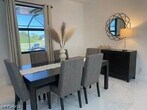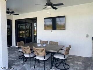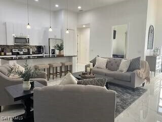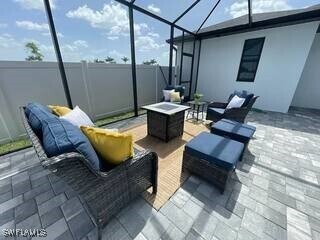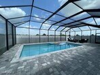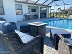 Welcome to your fully furnished dream home! This stunning,like new 1902 sq ft property features 4 bedrooms and 3 full bathrooms,and is located conveniently near Matlacha. Set on a corner lot,the home includes a two-car garage with impact-resistant doors,elegant pavers,and a large,screened-in private pool with an adjoining outdoor kitchen,perfect for entertaining. Inside,you'll find high-quality Spanish porcelain floors,granite countertops,a cozy living room fireplace,coffered ceilings,and crown molding. The property also offers a well-equipped laundry room,impact windows and doors,and superb interior and exterior lighting. Experience comfort and luxury in every corner