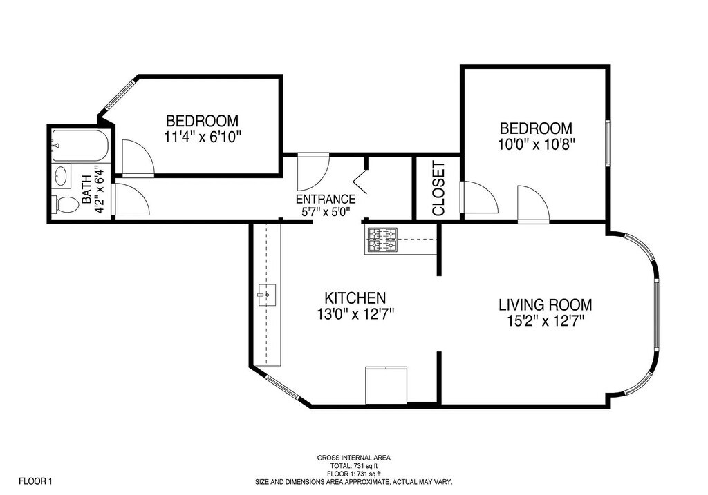 - 2BR, 1BA