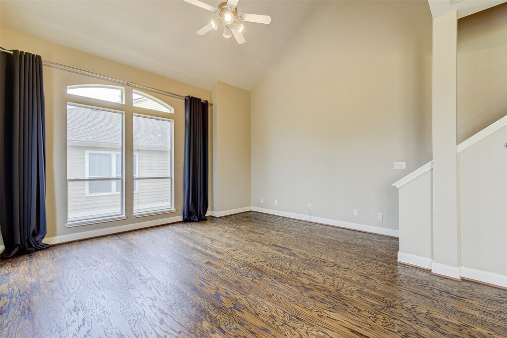 Townhome in EADO! This townhome in the charming East Downtown area sits on a corner lot and boasts a picturesque view of the Columbia Tap Hike & Bike trail. With its impeccable upkeep,this 3-story home features high ceilings,hardwood flooring on the main level,and abundant natural light. The expansive master suite includes a double sink master bath and an enormous walk-in closet measuring approximately 11' x 7'. Additionally,the second bedroom is sizable and consists of a generous closet. The property is on a wide street with a stunning view of downtown from the master bedroom. A gated entryway to the front door provides extra security. Enjoy easy access to Houston's major freeways and indulge in all the trendy Eado and Midtown restaurants and bars. Don't miss out on the opportunity to tour this impressive home! MLS# 48814287