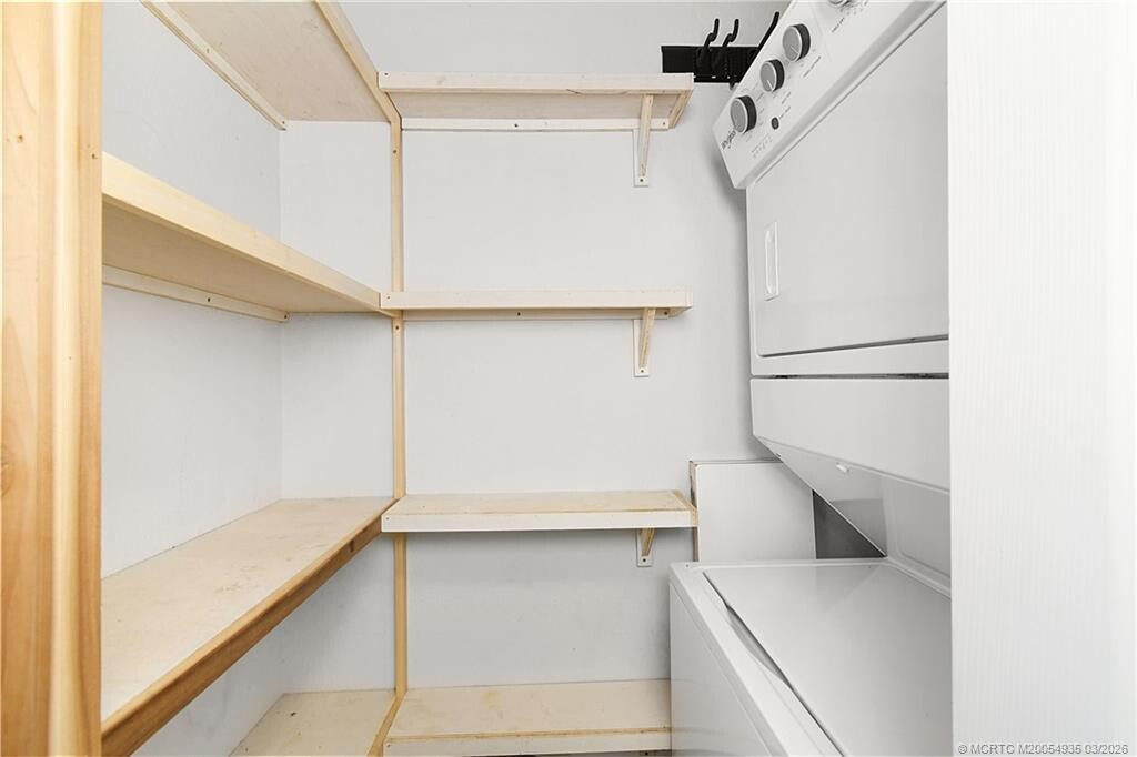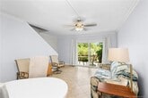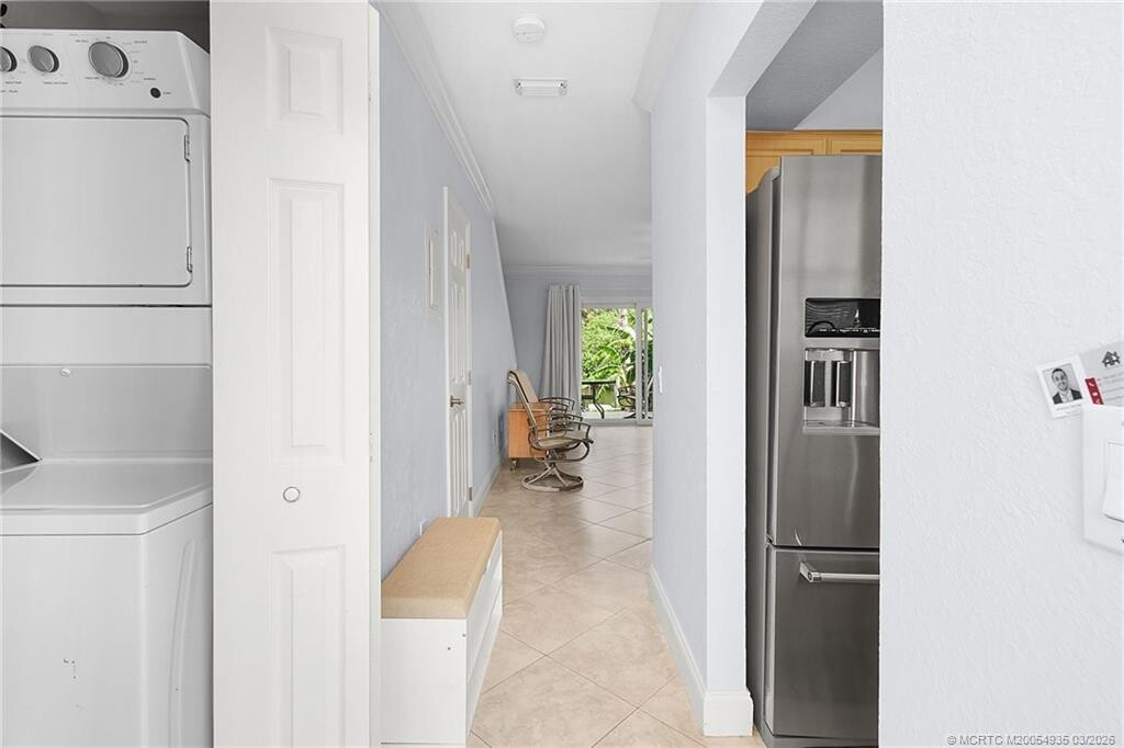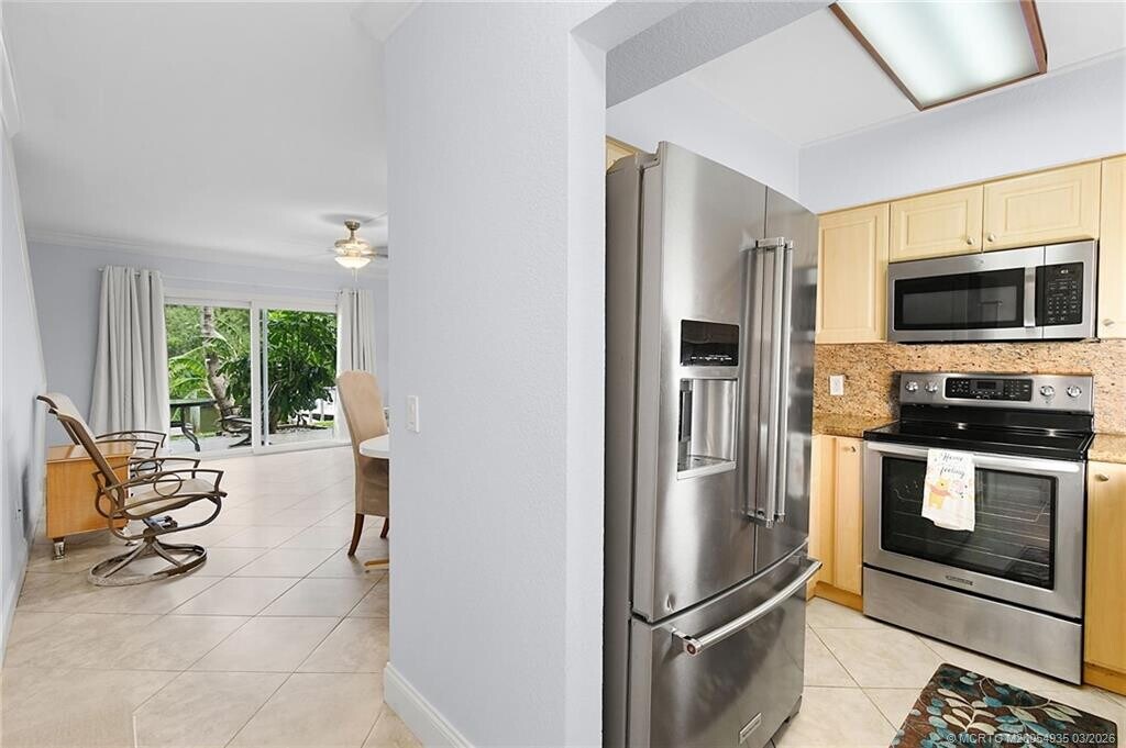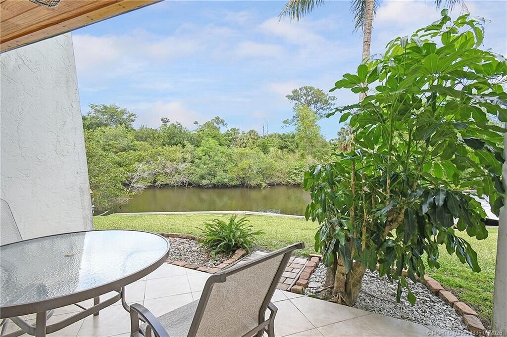 Discover your waterfront paradise with this Key West Style townhouse offering scenic views of Willoughby Creek and direct ocean access. This 2-bed,1.5-bath condo is perfectly matched for those who appreciate the boating lifestyle,boasting its own deeded dock and access to the St Lucie River,Manatee Pocket's restaurants,and the open ocean within minutes. The upgraded interior features granite countertops,stainless steel appliances,and tile floors throughout,accentuated by vaulted ceilings that create an expansive atmosphere. Enjoy convenience with an in-unit washer/dryer. Experience outdoor living with towering coconut palms and a beautiful community pool. One fixed bridge at 8' ft clearance. Tesla Charger installed. MLS# M20054935