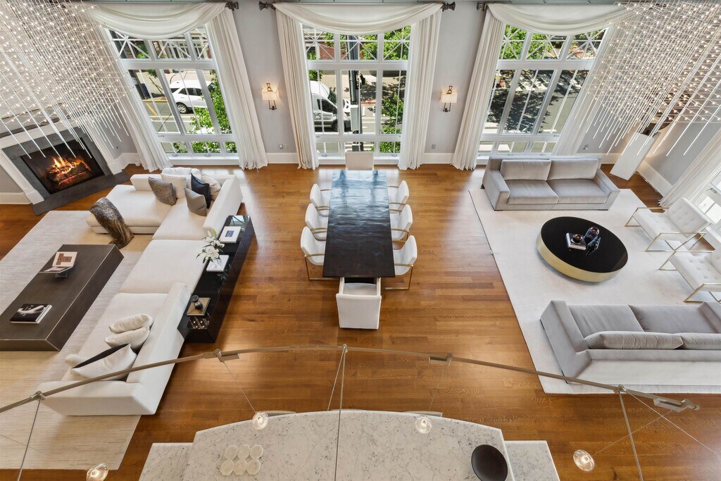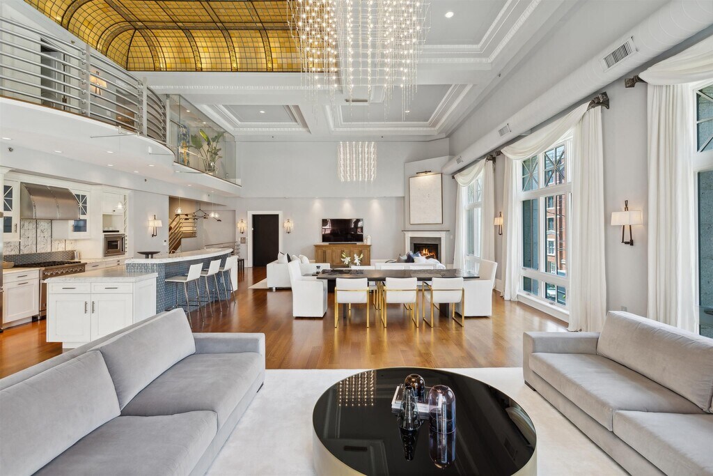 Richard WoodhullStunning, one-of-a-kind corner loft at the Historic Jefferson Trust Bank building. Built in 1909 and placed on the National Register of Historic Places in 1986, this truly unique space has soaring 21 foot ceilings, 3180 SF of living space, 2 bedrooms plus den, 2.5 bathrooms, private keyed elevator access into the home and garage parking for one car. Designed for entertaining, the five 9.5 foot high windows with northern and western exposures saturate the great room with natural light. The original egg and dart plaster moldings and spectacular 400 square foot stained glass backlit skylight are significant examples of the historic architecture of the building and compliment the loft's scale and opulence. Open chef s kitchen features Viking appliances, Carrara marble countertops and large island with breakfast bar. Both bedrooms have en suite bathrooms complimented by duel sinks, soaking tubs and showers. Second floor den provides the perfect home office or nursery. Half bath, laundry room, dark stained wide-plank solid oak hardwood floors, motorized window treatments, smart-lighting system, fire place and duel HVAC system round out this incredible home. Garage parking plus proximity to PATH, ferry, light rail and busses make commuting a breeze. Completely furnished including towels & linens, plates & glasses, pots & pans, cable/wifi & electric.
