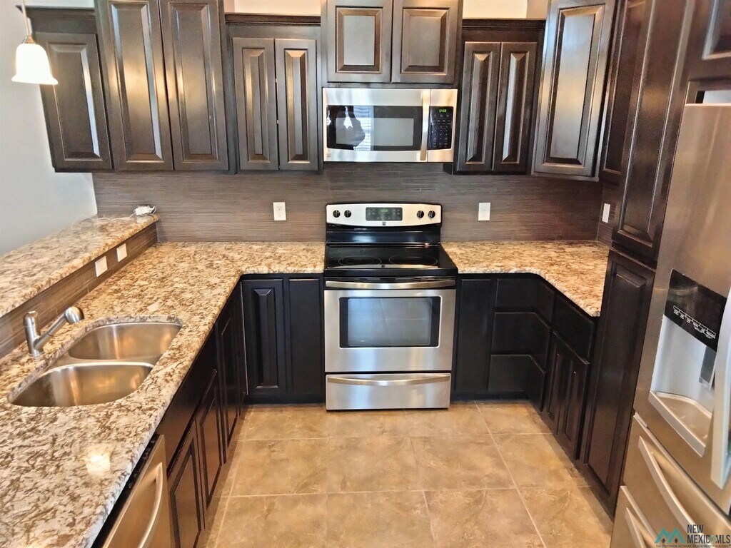 Discover your next home in the desirable Almond Ranch Estates! This beautifully designed property features a stylish kitchen with granite countertops,dark wood cabinetry,and modern stainless steel appliances—ideal for cooking and entertaining alike. The primary suite is a true retreat,complete with a spacious walk-in closet,dual vanities,a soothing jetted tub,and a stunning tiled walk-in shower. Additional highlights include a two-car garage and a built-in security system for added peace of mind. Enjoy quiet evenings on the covered back porch. The yard is designed for easy upkeep,with a sprinkler system in both the front and back,xeriscaping,and a small grassy area that enhances the home’s curb appeal. This home has everything you need—don’t wait to make it yours. Schedule your private tour today!