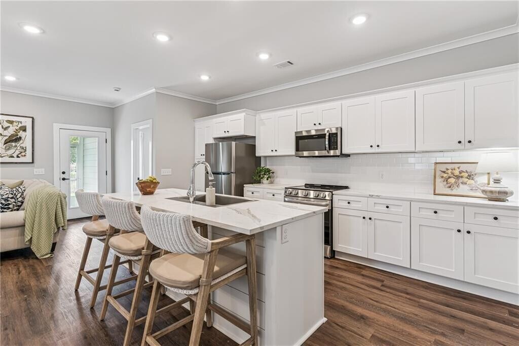 First Month's Rent is FREE! Move-in Ready New Construction! Grant’s Ferry Cove is a lovely neighborhood situated by an expansive freshwater lake setting perfect for today’s discerning homeowner. This vibrant community pairs the ease of single-level design with the sophistication of modern finishes and the richness of resort-style amenities. At its heart, a beautifully appointed clubhouse welcomes gatherings with a caterer’s kitchen, fitness center, TV lounge, and game room. Outdoors, residents can enjoy a sparkling pool, tennis, and two pickleball courts—all just steps from home. Each duplex-style residence showcases refined craftsmanship: open floor plans, luxury vinyl plank flooring, quartz countertops, stainless steel appliances, and soft-close shaker cabinetry. The great room flows seamlessly to a covered porch, creating effortless indoor-outdoor living. The primary suite serves as a private retreat with walk-in closet, spa-style bath, and double vanity, while two additional bedrooms and a two-car garage offer both space and convenience. Centrally located near I-95, shopping, dining, medical facilities, and golf, Grant’s Ferry Cove offers quick access to the Golden Isles’ best amenities. The new Buc-ee’s, FLETC, and Brunswick Airport are within minutes, while Savannah and Jacksonville are just an hour’s drive away. Visit our furnished model at 225 Bottlebrush Walk and experience Grant’s Ferry Cove for yourself. The time to embrace this lifestyle is now.