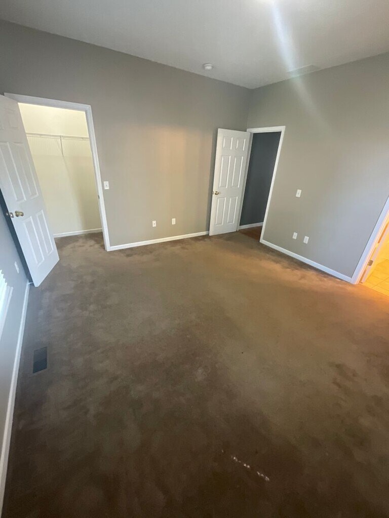 Large three-bedroom home with garage, porch, and fenced yard. Each bedroom offers a private bath. Large kitchen with new appliances. Washer and dryer included. Living and family room on different floors. The first bedroom and bath are located on the main level. Two bedrooms with adjacent baths on the second level of the home.