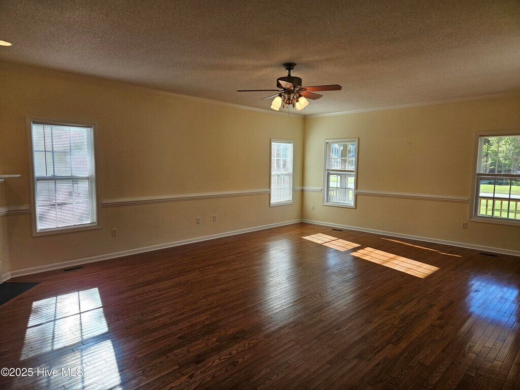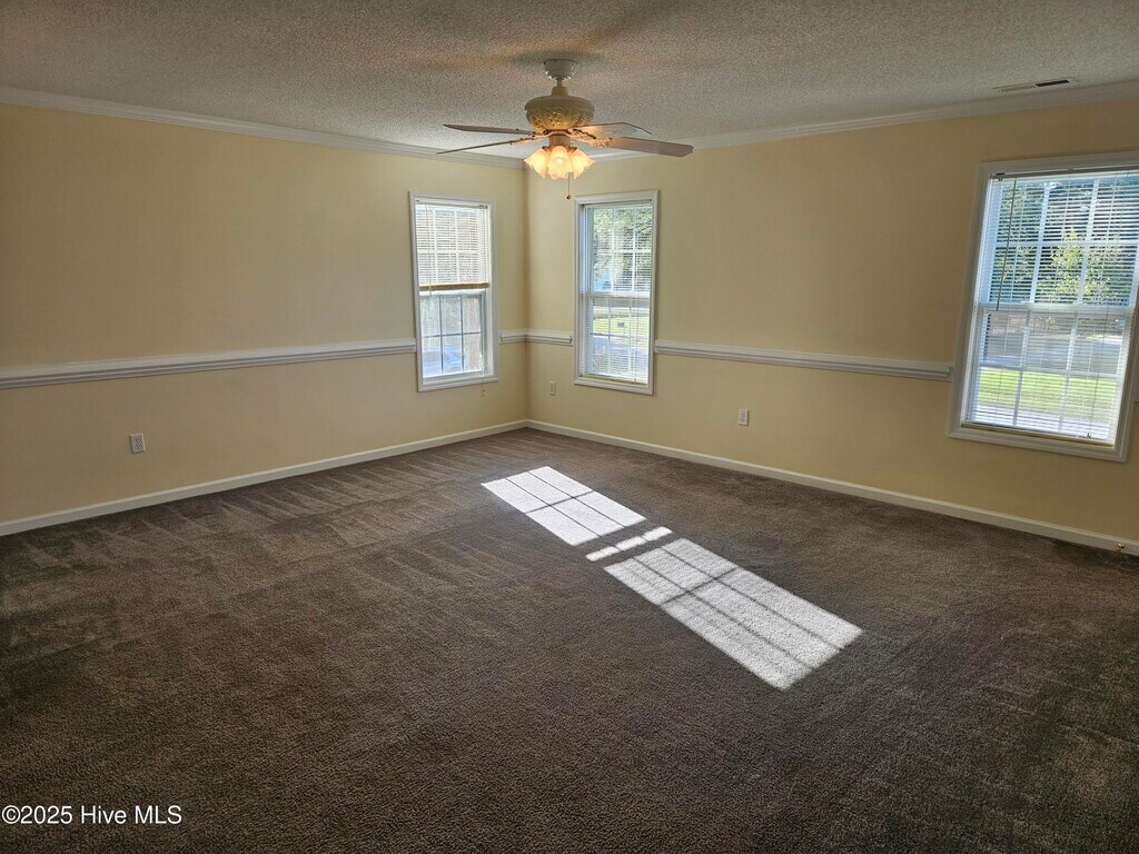 Beautiful unfurnished 4 bedroom, 2.5 bath home with 2 car garage located in the Creeks Edge Community. Newly painted interior. Floor plan has all bedrooms on the second floor along with a laundry room, hall bath and a large 3rd floor attic storage area as well. The downstairs living space is partially open to the kitchen with a spacious living room, kitchen, formal dining room and half bath. Access to the garage from the kitchen. The back yard is fenced in and has a small deck off the living room.The home is a short drive to local area restaurants, grocery stores, shops, and the local beaches.
